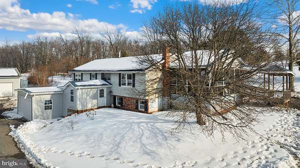 Bring on the horse-power, you pick the type! Equestrians, Car Enthusiasts, Hobby Mechanics, Homesteaders, small-scale farmers, etc., you're all going to love the private 8 acres conveniently located in Frederick County! Equestrians and hobby livestock farmers will enjoy the cleared pastures with about 4 acres fenced with room to expand, pole barn, two run-ins, frost-free hydrant and nearly 2 acers of woods for short rides, a quiet evening hike or play time on the 4-wheelers. For the horsepower enthusiast and hobby mechanics, you're going to be the envy of all your friends! This huge detached 3-bay garage, large enough for just about any vehicle, boat, etc., comes with a heavy-duty lift and a 220v plug. The 8ac property sits on a private lane with panoramic mountain views and no other houses right in sight. Watch the wildlife and enjoy the views of the neighboring pond. The property is mostly cleared and fenced for livestock and has been used as a private horse farm for the last 4 years. Previously it was used for beef cattle. The loved 4 bedroom, 3 bath split-level home is designed for comfortable living and great for multi-generation living as well. Pick up where the sellers left off, move in and add your own touches while you are living there, you'll build equity as you go. Enjoy the screened-in deck & the patio in front. The home is accessible on both levels for those that have challenges with stairs. The barn is currently used for storage and a run-in but would easily be convertible to a 4-stall barn. The detached garage has a large overhang, previously used for additional equipment storage but could be converted to a shed-row barn or used as additional run-in space. This home will benefit from your special touches and is priced accordingly, but there are so many things to love about it today, including hardwood floors on the upper level and spacious bedrooms with single level living. The lower level will give you even more space to spread out, provide private space for parent or those teenagers that need their own hangout or a large 4th bedroom. Maybe one day that lower level could be your dream primary bedroom/bathroom space. The possibilities are endless. Make this lovely Frederick County property your dream come true!
