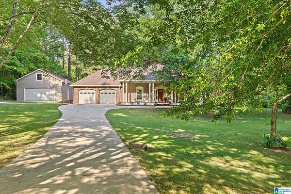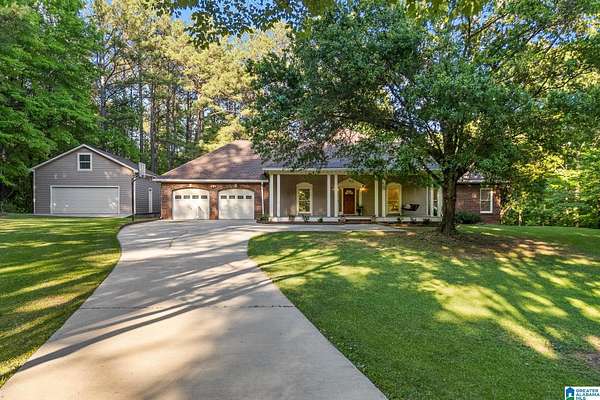 Acreage, privacy & the lifestyle buyers are chasing—perfectly positioned between Birmingham & Tuscaloosa! Tucked on a quiet cul-de-sac, this BRICK home on 7+/- ACRES (horses permitted) offers 2800+ SQFT all on 1-LEVEL w/ 3BR/2.5BA, a true foyer, formal DR & spacious LR w/stunning wood ceiling detail. Kitchen features granite, sunny breakfast nook & built-in desk & a gas 5-burner cooktop. Private primary suite w/dual vanities, clawfoot tub & sep shower. Large laundry w/cabinets & utility sink. Outdoor living shines w/a HUGE deck—covered & large open deck overlooking a beautiful, private backyard, ideal for entertaining, relaxing or enjoying wide-open space w/perfect spots for growing your own garden. The covered front porch adds charm. 2-car attached + 2-car detached garage w/storage above, perfect for workshop, equipment or hobbies. Hard-to-find blend of land, privacy & convenience! Roof is 5 yrs. young, two water heaters, leaf guard gutters. Bring your horses, RV, toys & your vision.