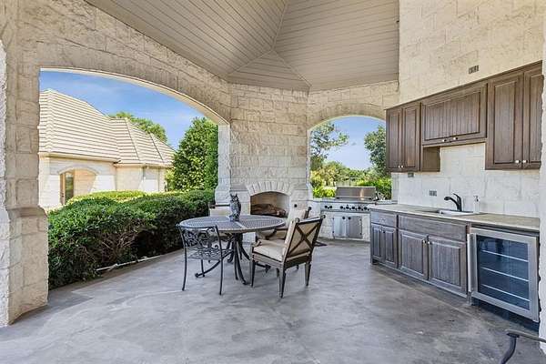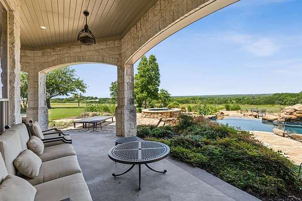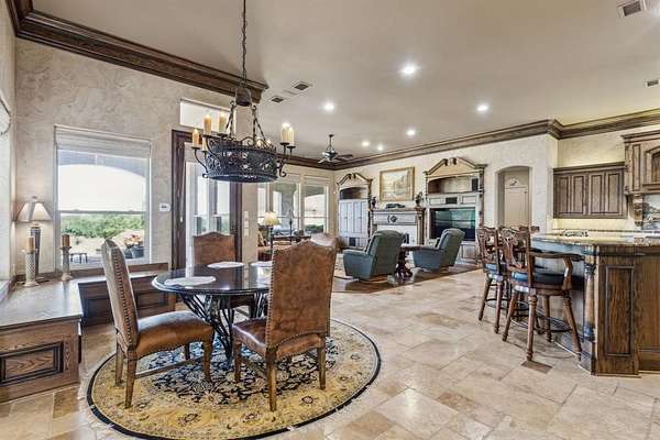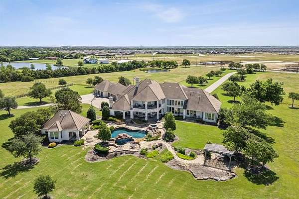 Set on 10 impeccably manicured acres w-sweeping views of the Dallas skyline w-an additional 40 acres available for purchase, this extraordinary hilltop estate is just minutes from downtown Forney. From the moment you arrive, the stately circular drive & lush landscaping set the stage for the elegance that awaits within. The nearly 7,000 sq.ft. custom-built main residence is a true masterpiece of design & craftsmanship, complete w-a private interior elevator. Grand formal living room welcomes you w-soaring double-height ceilings, creating a dramatic backdrop for both intimate gatherings & large-scale entertaining. The flowing open floor plan seamlessly connects formal & casual living spaces, including a warm and inviting family room w-custom built-ins + gleaming HW floors. Chef's dream kitchen is the heart of the home, showcasing dual islands, granite counters, a professional-grade cooktop, built-in refrigerator, double ovens, SS appliances + an adjoining wine cellar. Luxurious primary suite is a private retreat, featuring a cozy sitting area, romantic fireplace & a lavish spa-inspired bath. A custom-designed closet provides both beauty & function. Additional highlights include a spacious utility room w-built-ins & sink, plus a private study w-its own fireplace. For leisure & wellness, the estate offers a fully equipped workout room w-a wet bar, a spectacular game room w-another wet bar for effortless entertaining & a state-of-the-art theater w-authentic theater seating for the ultimate movie-night experience. Step outside to resort-style living w-a sparkling pool & expansive covered porches on both levels--perfectly positioned to capture the golden Texas sunsets & breathtaking skyline views. Guests will feel right at home in the 1,034 sq. ft. guest house, while car enthusiasts will appreciate the attached 2-car garage & the ultra-wide 6-car garage--ideal for collections, a workshop, or recreational vehicles. 40 acres is available for purchase for more space & privacy.