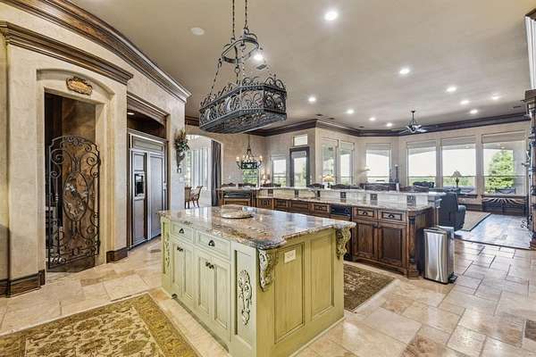 - Built-In Features, Built-In Wine Cooler, Cable TV Available, Chandelier, Decorative Lighting, Double Vanity, Eat-In Kitchen, Elevator, Flat Screen Wiring, Granite Counters, High Speed Internet Available, In-Law Suite Floorplan, Kitchen Island, Multiple Staircases, Natural Woodwork, Open Floorplan, Pantry, Sound System Wiring, Vaulted Ceiling(s), Wainscoting, Walk-In Closet(s), Wet Bar