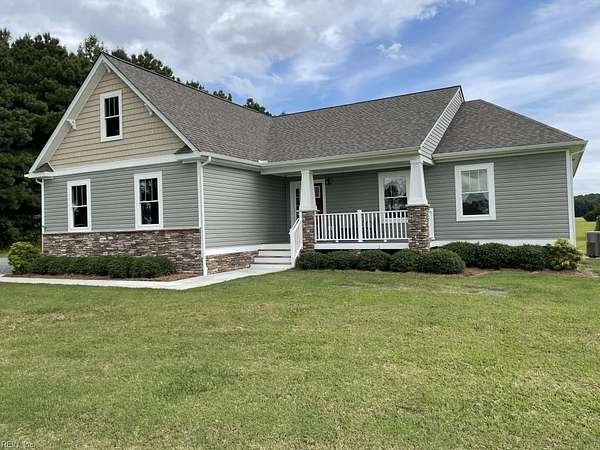 Est $2,628/moCharming one-story, 3 br, 2.5 bath, craftsman-style home with 2 car garage, nestled on 5.1 flat/usable acres in a beautiful, upscale, community on Hungars Creek, near a deep-water, HOA-owned boat and kayak launch ramp. Unfinished room over the garage with water view, with rough-in for full bath. Open concept floor plan. Five years old but looks brand new! Immaculate!