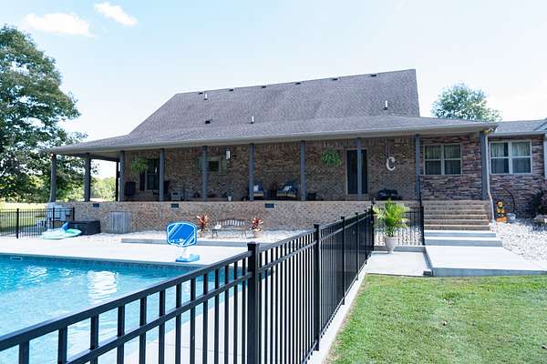 Check out this beautiful custom home, with all kinds of amenities. This home features 3 bedrooms, 2 baths, with plenty of extra storage and closets, a movie room, an office room, an attached and detached garage, as well as a stunning in-ground swimming pool! This well designed house has many desirable features; such as a tongue and groove cathedral ceiling, a double sided fireplace, tile shower, free standing tub, a massive laundry room with plenty of cabinetry, a walk in pantry, and all walk in closets. The kitchen is where luxury meets farmhouse, its custom cabinetry- with pullout spice racks, a pan pullout, deep drawers, granite countertops, and a 3'x9' island- makes it functional and elegant. Situated on a mere 5 acres, this home is a MUST SEE!
