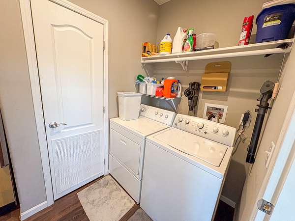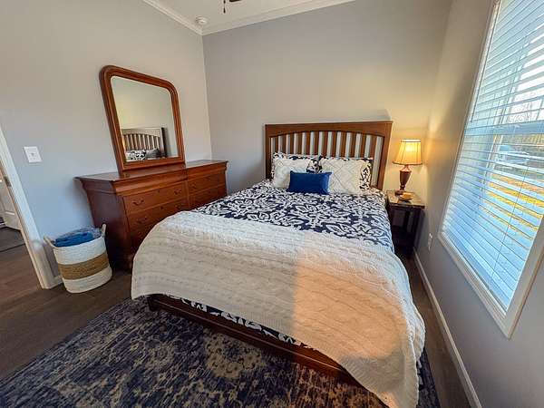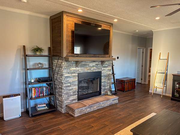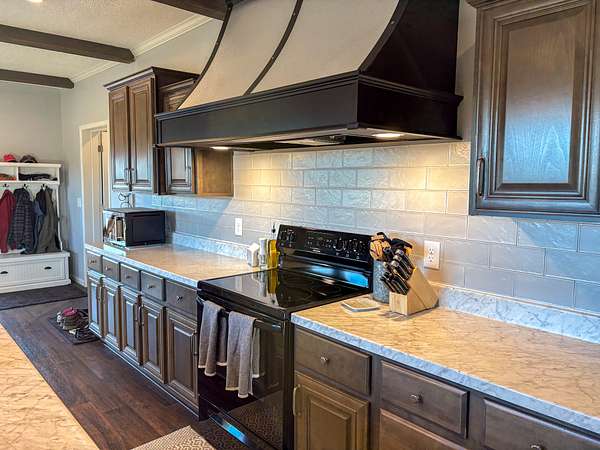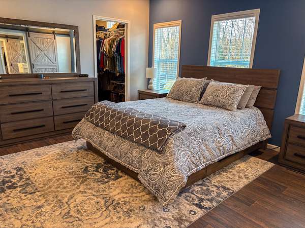 Step inside to a bright, open layout with 9-foot ceilings and abundant natural light throughout the living, dining, and kitchen areas--perfect for everyday living or entertaining. Large countertops and the island make for expansive kitchen space for cooking and serving. The cozy living room features a wood-burning fireplace and large windows allowing gorgeous views of the property. The private master suite is a true retreat, complete with a spacious bath featuring a 4x6 walk-in shower and his-and-her closets. All appliances stay--including washer and dryer--with all-electric appliances from 2021 or newer. Additional features include central HVAC, whole-house water filtration, and HughesNet internet for reliable connectivity. The architectural shingle roof was replaced just five months ago.