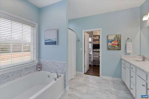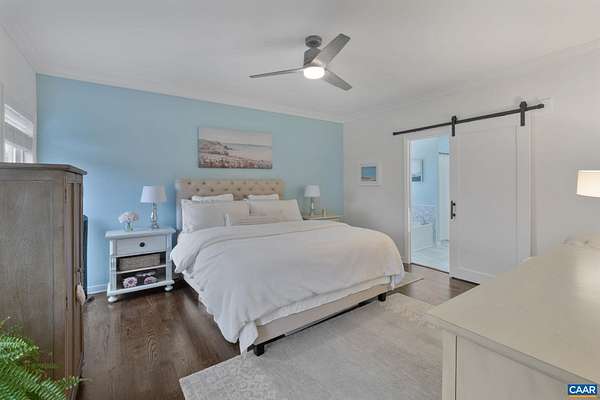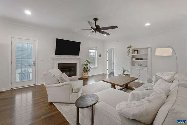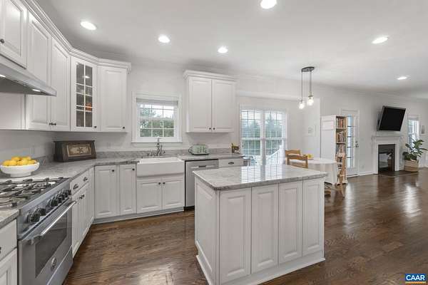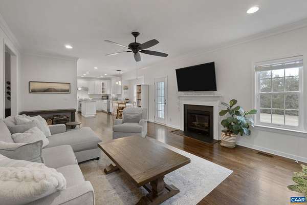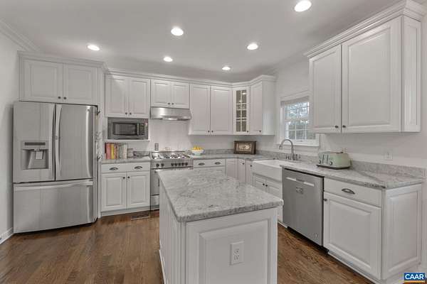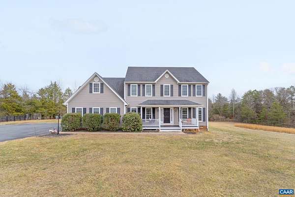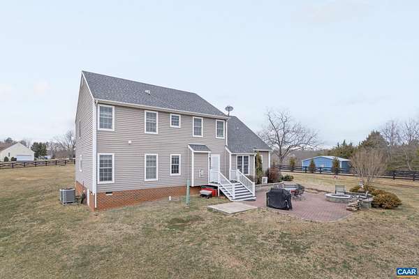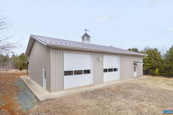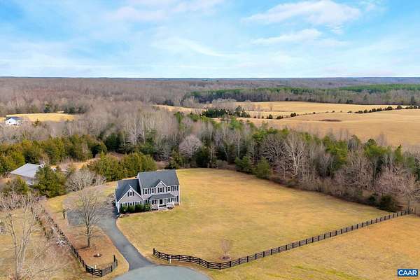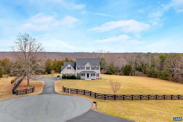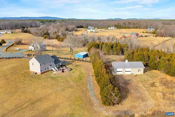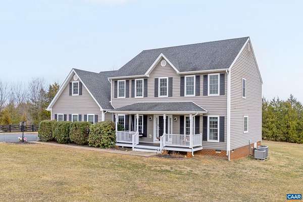 Surrounded by mountains, vineyards, farms this modern farmhouse (with Starlink High Speed Internet) is situated on a mostly flat, 5-acre lot in a peaceful, friendly neighborhood that still affords privacy. The home offers a spacious first-floor primary bedroom with a custom built, walk-in closet. The en suite bathroom has a deep soaking tub, double sink vanity and Pergo flooring. The main level boasts hardwood floors, oversized windows and crown molding. The gourmet kitchen is equipped with a breakfast nook, center island with extra storage, pantry, porcelain farm sink, granite countertops, Bertazzoni dual fuel range and SS appliance. The kitchen exits to a large, professionally landscaped brick patio with a built-in firepit, perfect place to entertain. Upstairs you will find a cozy family room with 4 additional large bedrooms (2 of which have walk-in closets). Hidden behind a row of mature trees, there's a 1600sqft multi-faceted garage with two 12 ft. garage doors AND an attached 800sqft apartment with two mini-splits for heat/air. There are endless opportunities on how to use this space. If you are seeking country living with multiple ways to enjoy the outdoors AND just 25 minutes from Charlottesville, this is your home!