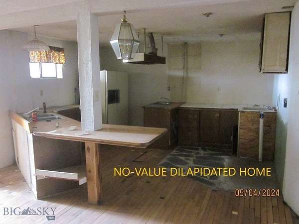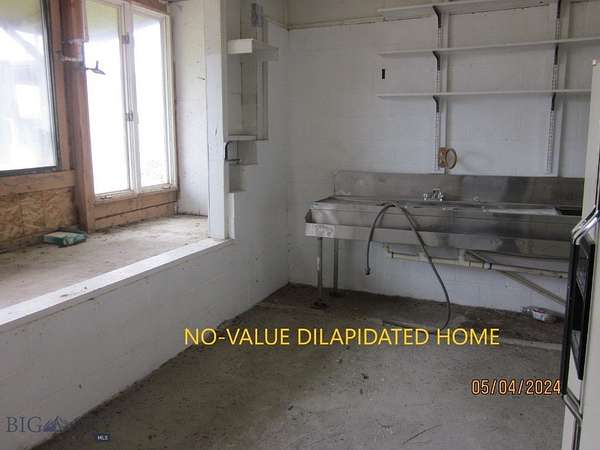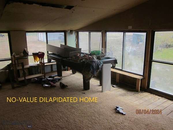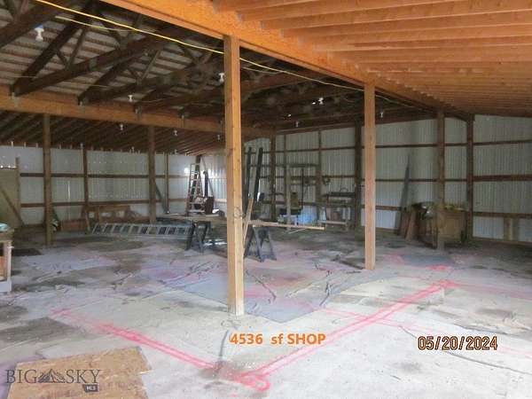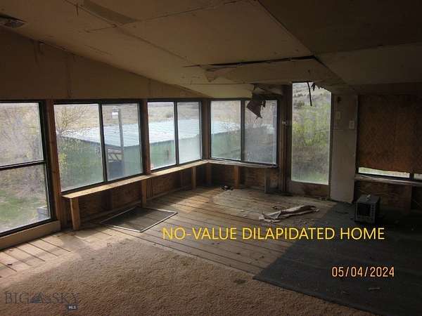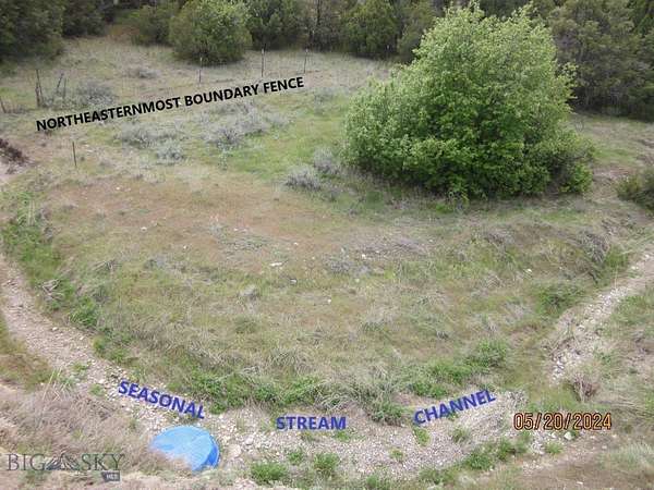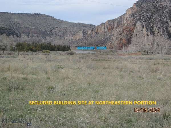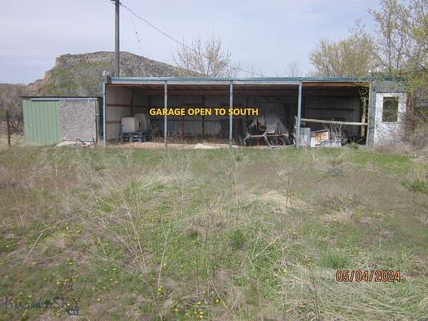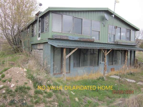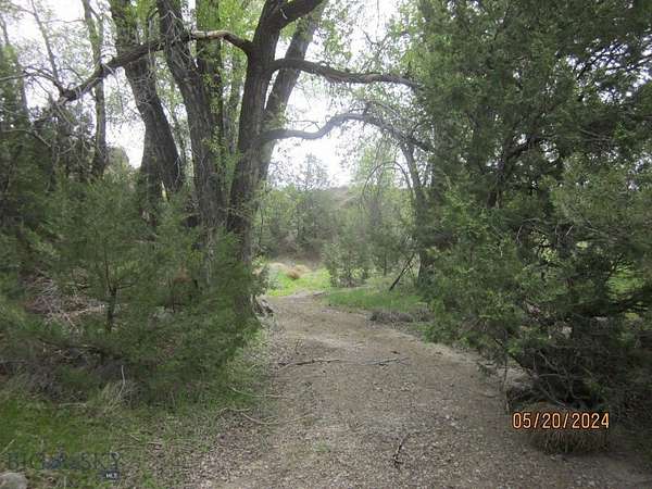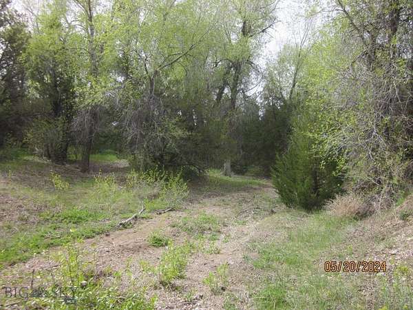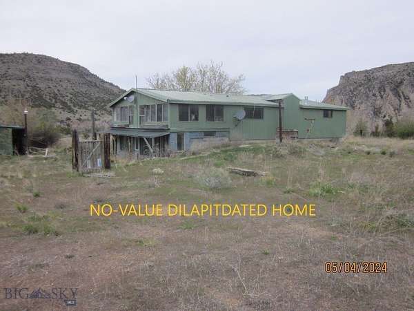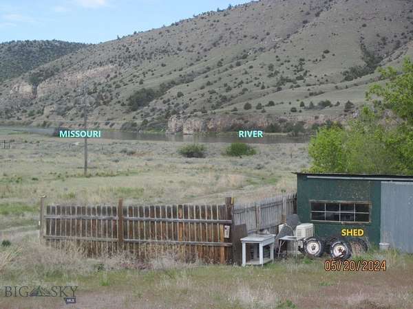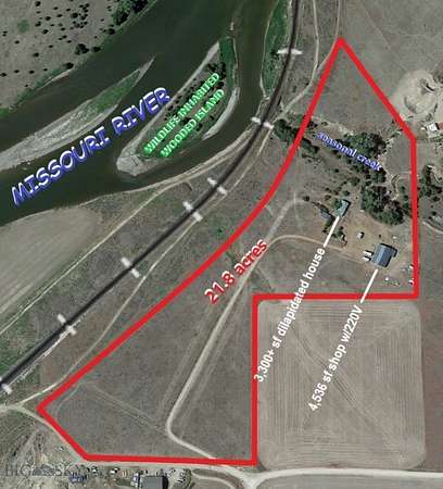 Lot 1004 of 21.77 acres is attractive for its LOCATION adjoining the MISSOURI RIVER- and its SPACIOUSNESS and end-of-road SECLUSION!! Motivated seller dropped price to $499,900 then again to $487,000. Given that a single acre in nearby Gallatin Valley is commonly priced at $500K+ without river access this is an EXCEPTIONAL BUY. It may be SUBDIVDEABLE for regaining some purchase costs. It features a massive 4,536 sq ft metal-roofed, metal-sided, pole-barn shop for a new owner who may enjoy fabricating wood or metal products, or for storage of vehicle toys. PROPERTY IS NOW BEING OFFERED WITH OWNER FINANCING UNDER TERMS ACCEPTABLE TO SELLER (Realtors read Financial Comments). AS-IS and only the vehicles will be removed by the seller; OTHER REMNANTS ON THE PROPERTY WILL REMAIN. The present owner connected the electrical grid, parked their RV here and lived in it, plus created a solar powered water well 4 separated spigots. Seasonally, property welcomes a wide variety of songbirds, rabbits, wild turkeys, foxes, geese, and pheasants. etc. An uninhabitable dilapidated former dwelling consisting of 4 Bd, 1 Ba upstairs and 2 Bd, 1 Ba downstairs on a 55x 30 cinder block foundation exists. Owner puts NO VALUE on this because it could be mold ridden; pictures shown are merely to show what exists; however, a handy buyer may be able to rehabilitate it. Location is near the northwesternmost extreme of 18.5-square-mile Ponderosa Pines Ranch where it is a 5-minute hike across railroad right-of-way to a side-channel fishing spot opposite a large vegetated island of the Missouri River where locals say fishing can be phenomenal in the fall of a year; wildlife abound on this island. So, this may be especially attractive to a buyer who likes to fish/boat/raft, or just sit on the riverbank and watch the natural peacefulness of Canada geese, pelicans, ducks and osprey nesting on the island and observe the fly-over eagles that surveil them. To further add to the end-of-road privacy and mystique of the LOCATION is a deep, heavily vegetated natural seasonal stream channel on the northeast side of the acreage; to zoom in on this area use Google Earth coordinates on the big shop at 46.08783, -111.38907. The perimeter boundary is fenced for HORSES but needs some repairs. Elevation of only 4,000' is 400 feet lower than the international airport in Belgrade, MT located less than 1 hr drive away, meaning winter snow accumulation is comparatively minimal.