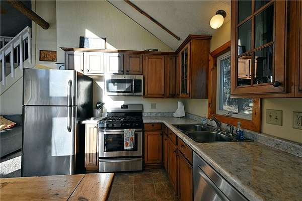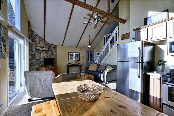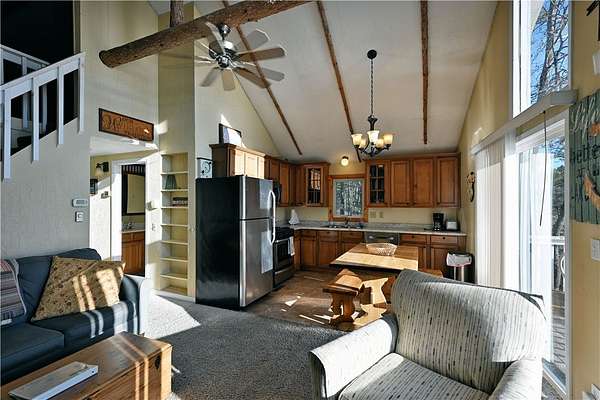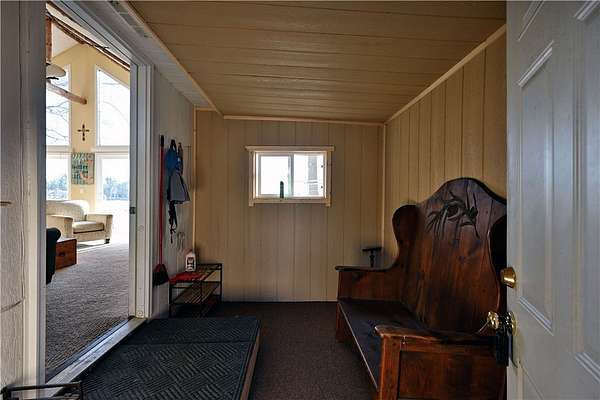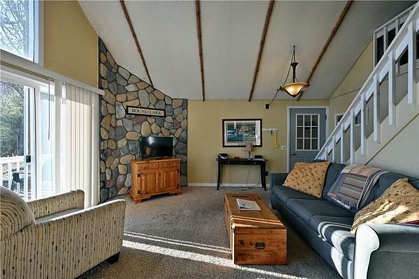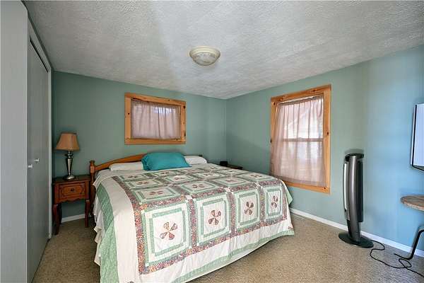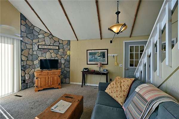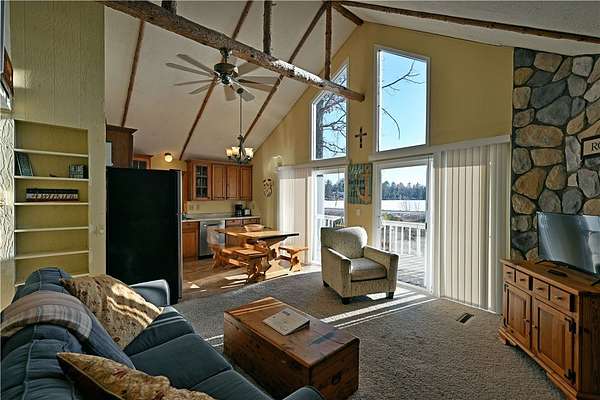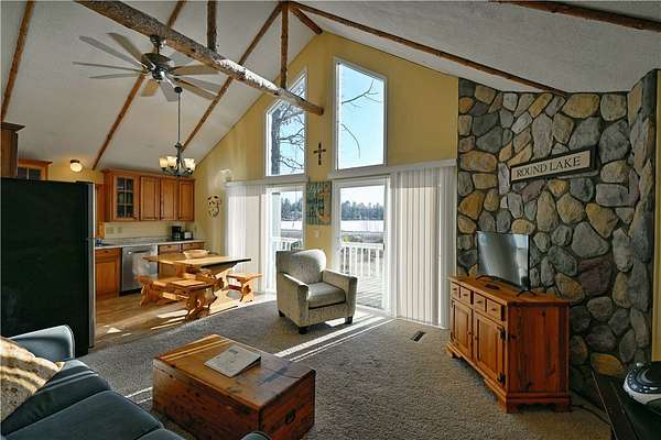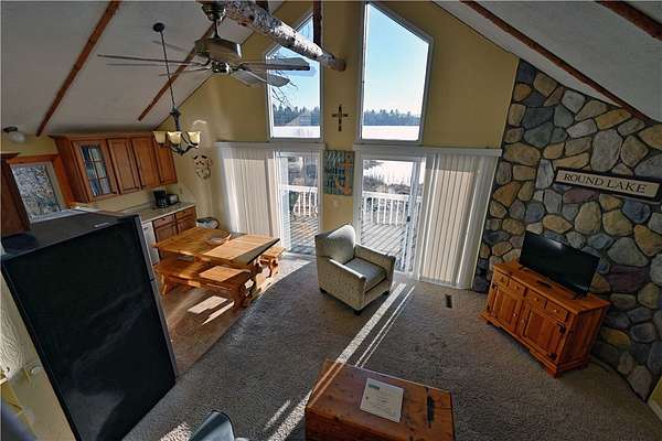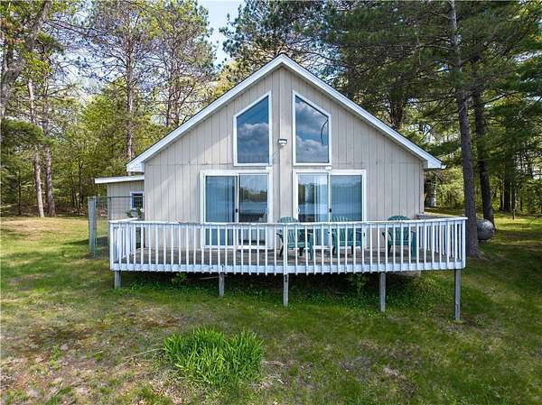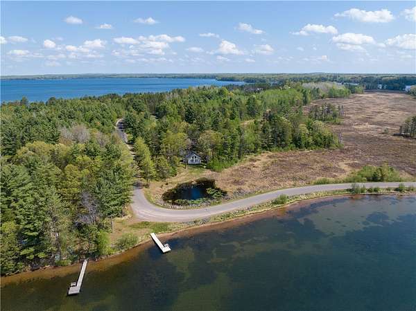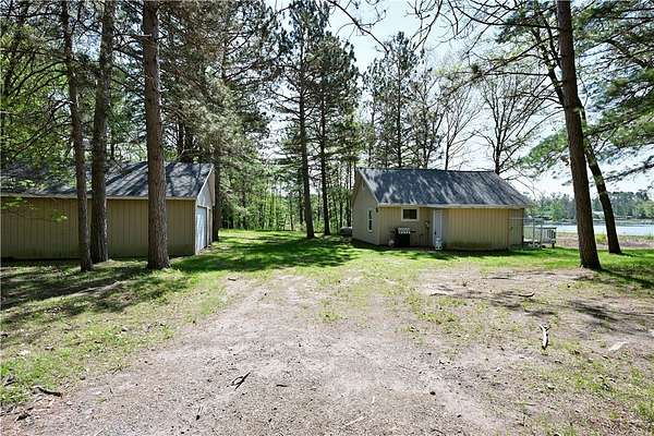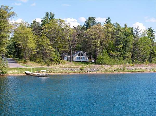 Enjoy stunning southerly views of Round Lake's Richardson's Bay with approximately 330 feet of waterfront frontage. This updated home features vaulted ceilings, a spacious loft for extra sleeping space, and a large yard complete with a firepit--perfect for gatherings. Moreland Road separates the home from the lakeshore, but access is easy and convenient. A detached garage offers additional storage for your gear and toys. Located on Round Lake, one of the most sought-after lakes in the area, known for its excellent fishing and wide range of recreational activities. Just minutes from Hayward, with access to bars, restaurants, and year-round fun. Plenty of room to expand and make it your own.