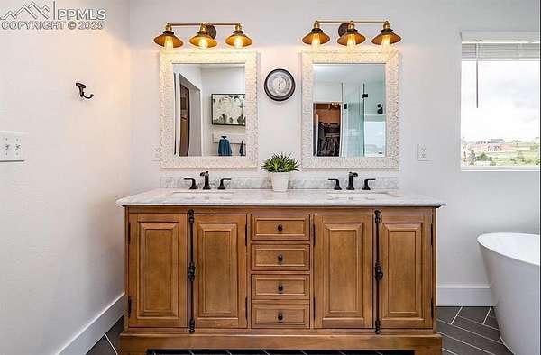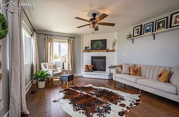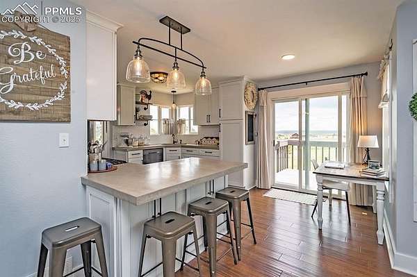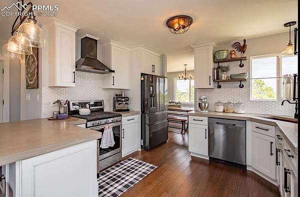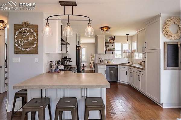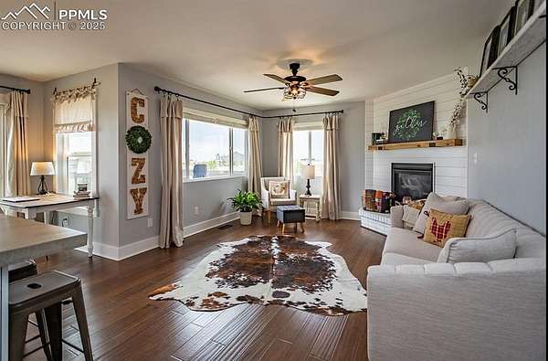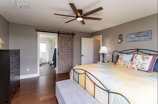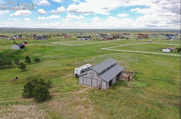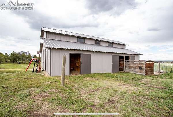 Discover the perfect balance of country charm and modern convenience in The Trails at Latigo. Nestled on a 3.63-acre corner lot with community riding trails and open space, this American Craftsman home is less than 15 minutes from Falcon and just around the corner from Latigo Equestrian Center. For those who love animals or need extra space, the 30'x50' barn is a true highlight. Complete with power, frost-free water, three stalls, a tack room, chicken coop, workshop, new siding and paint, and upgraded wiring, it's ready for horses, livestock, or your favorite hobbies. Inside, the home features 3+ bedrooms and 3.5 baths, including a beautifully remodeled primary suite with a freestanding tub, large glass shower, and stylish herringbone tile. The kitchen is equally impressive with a natural gas KitchenAid range, custom concrete countertops, farmhouse sink, and designer backsplash. The finished walk-out basement adds a spacious recreation room, 3/4 bath, large laundry area with storage, and a versatile non-conforming bedroom or office. Recent updates include fresh interior paint, exterior paint, a Class IV roof, and high-speed fiber internet, giving you peace of mind along with modern comfort. Whether you're looking for room to spread out, space for animals, or simply a quiet retreat close to town, this property offers it all.
