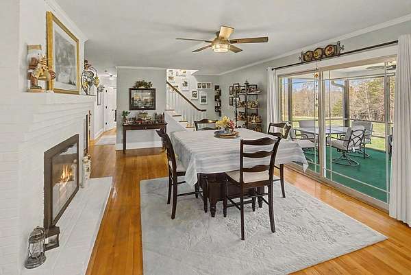 Welcome to this stunning brick home on a spacious beautifully maintained yard offering the perfect blend of privacy, charm, and modern upgrades. This lovely home boast a wide front porch and a large shaded yard for relaxing evenings and entertaining guest, three spacious bedrooms, 2 full baths, dining room with a fireplace, double doors lead out to the screened in porch, first floor laundry/pantry off the kitchen and a full unfinished walk out basement with endless opportunities. The updated kitchen has gorgeous white staggered cabinetry, granite counter tops and stainless steel appliances purchased in 2023. The heat pump with gas back up was installed less than a year ago. Water heater installed in 2023. Generator installed in 2021. Central vacuum and Metal roof was installed 2017. Out building with a ramp and a shed on the side to store your mower or tools. 10.02 acres! Plenty of space for a garden, ATV riding, hunting, or mini farm. Come and enjoy the serenity of country living at its finest!