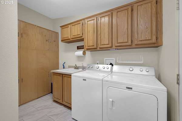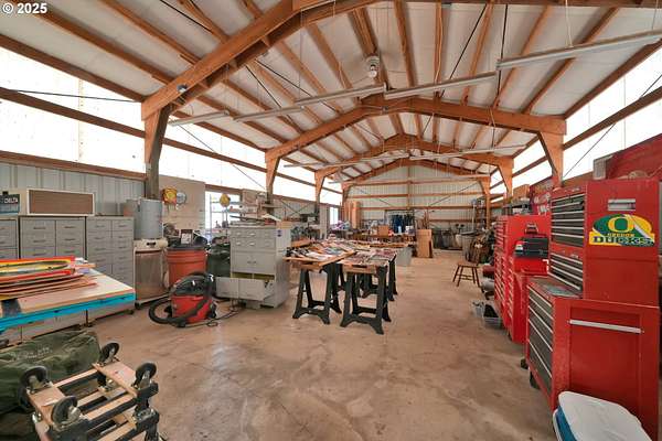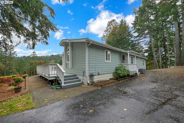 Welcome to this impeccably cared for one owner triple-wide manufactured home located in the peaceful countryside of Oakland, Oregon. This 3-bedroom, 2-bath property offers comfortable living spaces, thoughtful updates, and extensive shop and storage areas-ideal for hobbyists, car enthusiasts, or anyone needing room to work and spread out. The home features vinyl double-pane windows, composition roof, and efficient systems including an electric furnace with heat pump and electric tank water heater. Recent updates include fresh interior paint, new toilets and a freshly recoated asphalt driveway. The kitchen is equipped with a range and refrigerator, and the washer and dryer are also included. All window drapes and rods stay, along with some garage shelving. The property includes two separate 200-amp electrical services-one for the home and one for the shop. The impressive detached shop/garage measures approximately 24' x 98' (2,352 sq. ft.) with 220 power, lighting and outlets throughout, and a diesel fuel heater, accommodating four or more vehicles. There is also covered RV parking (24' x 36' pole building, with power nearby) and a well house (6' x 10') covering the cement holding tank. This property combines comfort, functionality, and plenty of space for work, recreation, and storage-all just minutes from downtown Oakland.