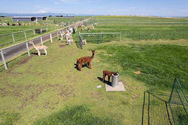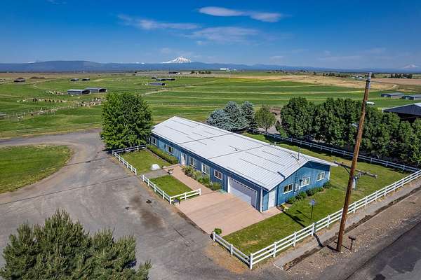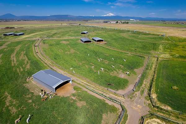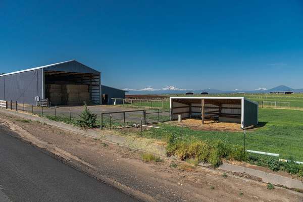 Mountain View Livestock Farm offers an exceptional opportunity to own a meticulously developed property designed for both animal care and operational efficiency. Located just outside of Culver, this 107.72+/- acre farm is set against the scenic backdrop of the Cascade Mountains and less than an hour from Bend, with Portland just two hours away. The farm was designed with the flexibility to accommodate a variety of livestock. Improvements include a 3,400+/- sq. ft. metal-framed home, a large multi-use barn with feed storage, indoor corrals, a dedicated vet room, and an apartment with an upstairs office offering expansive mountain views. A second barn with 8 stalls with runs, and a smaller 5-stall horse barn. The property also includes 13 livestock shade shelters and over 30 automatic, heated waterers. 106+/- acres of NUID water rights, applied mostly by pivot and underground sprinklers. This is very well maintaned farm, with many more details to see.