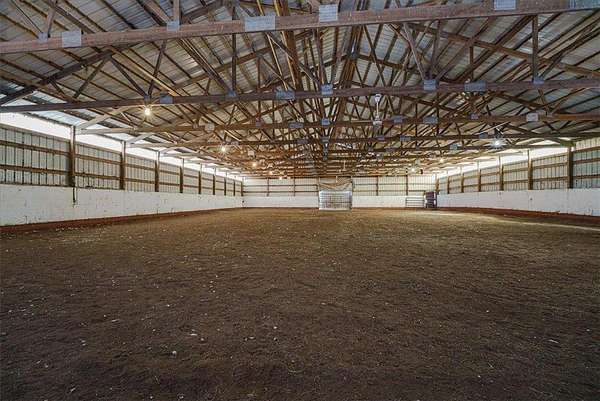 Now for the real magic -- huge pole building, fully equipped indoor riding arena, 6-stables, fenced pastures, hay fields, a studio apartment, workshop and indoor garages, making this a true equestrian paradise. Whether you're running a horse hobby farm or entire operation, you'll just love the wide open spaces, that this property provides.