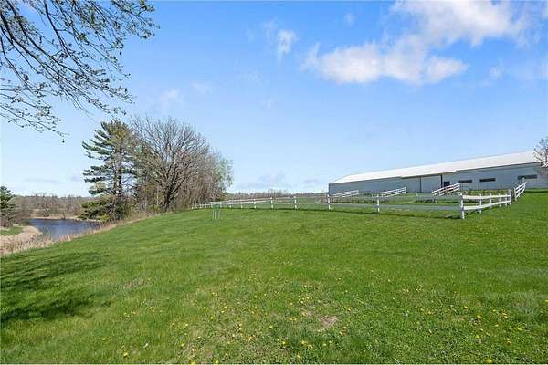 Welcome to your hobby farm and/or equestrian retreat! This stunning 26+ acre horse farm offers the perfect blend of luxury living and countryside charm. Overlooking the serene Rum River, this property boasts a fully equipped indoor riding arena, stables, and expansive fenced pasture. Step inside to this custom built rambler featuring one level living, panoramic views from every window, and exquisite woodwork throughout. The updated, oversized kitchen sits just off of the large formal dining room complete with built-ins and flows into the inviting living room featuring a cozy gas fireplace. The main floor primary suite includes a spacious walk-in closet and an oversized bathroom. Step outside onto the huge, maintenance free Trex deck--ideal for relaxing or entertaining with river and pasture views.The finished lower level includes a walkout family room and game area, two large bedrooms with walk-in closets, a 3/4 bathroom, and an abundance of storage space. Whether you're a horse lover, nature enthusiast, or simply looking for tranquility and space, this property offers unmatched lifestyle potential. Don't miss the opportunity to own this unique riverfront horse haven.