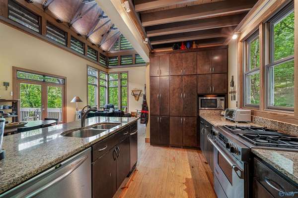 ONE OF MENTONES RARE JEWELS One-of-a-kind estate on the coveted East Fork of Little River! The architectural award-winning main home flowing seamlessly with nature features soaring cathedral ceilings and walls of windows framing breathtaking river views throughout. A likewise award-winning guest house--nicknamed the "grandkid camp"--boasts roll-up garage doors that open into screened spaces if you choose to have the true camp-style retreat. The large basement and separate garage offers ample space for storage and parking. With 35 acres total--25 on one side of the river and 10 on the other--this property offers unmatched privacy, natural beauty, and a lifestyle blending luxury with adventure.