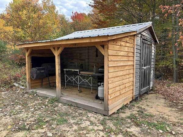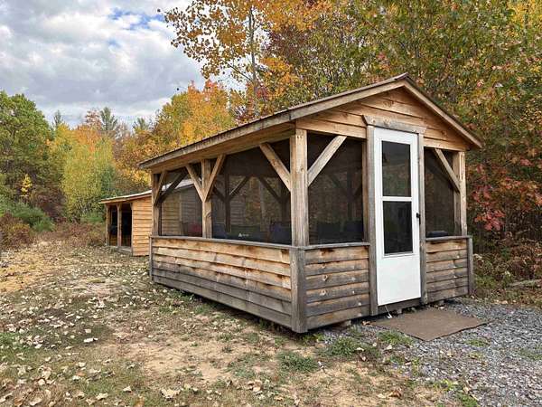HUNTERS! CAMPERS!…..or anyone searching for that peaceful getaway, your search is over. This property has over 55 acres of beautiful land, mostly wooded, with numerous buildings on the property. Let’s start with the 30’x50’ barn/oversized storage building, complete with metal roof, insulation, power, and overhead storage space. Building #2 is an adorable cabin with room for two beds, also with power. It is Amish built, stained and sealed, with vinyl siding as well. Building #3 is an outhouse (see pics). There are electric poles and power for two camping sites (the campers on the property will be moved). There is a septic system for both sites. Water is brought in. Building #4 is a 12’x14’ screen house with plenty of room for seating/gatherings. Building #5 is an outdoor kitchen cooking area with storage off the back. The grills will stay. There are sand pits on the property and a large fire-pit for evening bonfires. You will love the many, many trails for four wheeling. Further back on the land are buildings #6 and #7, a stationary hunting shanty, and another shanty. The back of the property and most of the right borders Brasher State Forest. You don’t want to miss out on all of the wonderful things this property has to offer. Get your showing scheduled to see this today.
