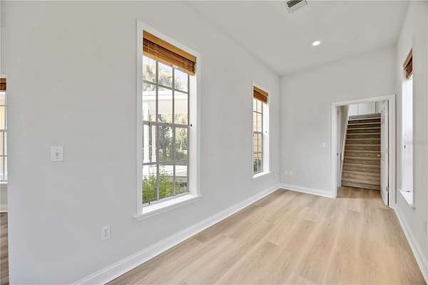 - Built-In Features, Ceiling Fans(s), Crown Molding, Eat-In Kitchen, High Ceilings, Primary Bedroom Upstairs, Solid Wood Cabinets, Split Bedroom, Stone Counters, Thermostat, Tray Ceiling(s), Vaulted Ceiling(s), Walk-In Closet(s), Window Treatments