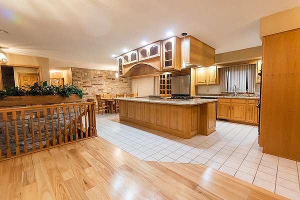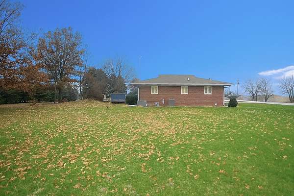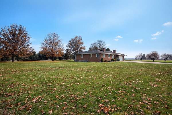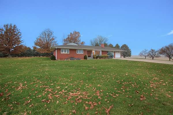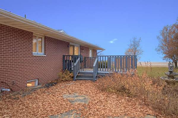 Beautiful brick ranch-style home situated on a picturesque 2-acre lot just outside of town. This well-maintained property offers timeless charm and exceptional space both inside and out. The main floor features gorgeous hardwood floors, solid wood doors and trim, and custom stone accent walls that add incredible character. The spacious kitchen includes a huge center island, abundant cabinetry, extensive counter space, and a professional-grade hood perfect for indoor grilling or high-performance cooking. The open-concept main level offers a warm and inviting living room with a stunning stone fireplace, dining area, 3 bedrooms, 2 full bathrooms, and a convenient main-floor laundry room. The full basement provides even more living and entertaining space with a large family room featuring a wood-burning fireplace, a generous wet bar, a half bathroom, and two additional finished rooms ideal for an office, hobby room, workout area, or extra storage. Outside, enjoy the peaceful surroundings from the deck off the dining room or follow the unique stone-paved path to a sunken patio area - the perfect spot for a future fire pit or cozy outdoor gatherings. The property also includes a large 2.5-car attached heated garage. This exceptional home offers space, character, and an amazing country setting while still being close to town. A must-see!
