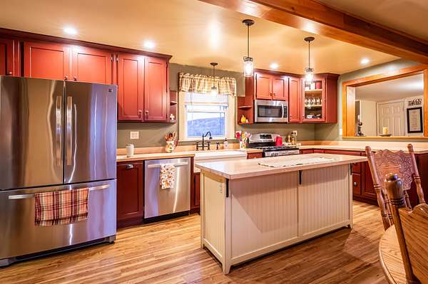 Escape to this nearly 50-acre farmhouse and live the life of your dreams. The home offers maintenance free siding, a metal roof, rain gutters and attached fenced in area for your pets. The house has had several upgrades throughout the years, including a pellet furnace which is attached to the oil fire hot air system, 200-amp electrical panel, propane corner heat stove as well as the propane cooking stove. Kitchen has been beautifully remodeled including a lovely breakfast bar, farmhouse sink, coffee bar, and so much more. Attached is the spacious pantry with a vegetable sink, freezer and storage area. Additionally, the first floor has a den/office, living room, dining area, full laundry and bathroom. Second floor has three bedrooms, full bath and large expansion area. The side porch is a heated pet room and the beautiful closed in front porch is very enjoyable on those gorgeous summer evenings. The barn offers animal stalls, plenty of room for storage, front & rear access for animal grazing & livestock housing. The land can be used for snowmachine access, snowshoeing, cross country skiing, hiking & hunting. The home is SOLAR POWERED and offers nearly 100% electricity free. The solar unit if cost free & transferable to the new owner. Enjoy early gardening within the green house. The garden areas include a variety of fruit and perennial plants. Land in Current Use, Buyer responsible for all cost in removing from current use. Listing agent is related to seller.