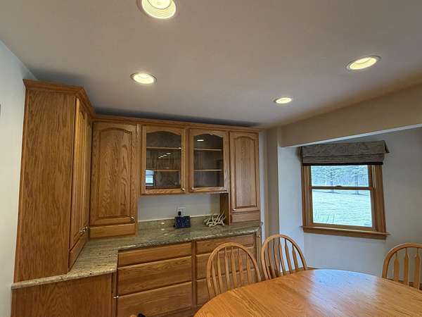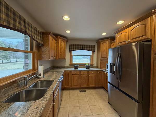 Enjoy the perfect blend of comfort, space, and privacy with this beautifully maintained 3 bedroom, 2.5 bath home situated on 3 acres just outside the city limits. Step inside to a welcoming layout designed for both everyday living. The kitchen is a true highlight, featuring stainless steel appliances, granite countertops, and ample cabinetry to meet all your storage and prep needs. The adjoining dining and living areas create an inviting space filled with natural light. Just off the living room, you'll find a relaxing screened porch; the perfect spot to enjoy your morning or unwind in the evenings while taking in peaceful views. The porch also offers private access from the primary bedroom, creating a serene retreat feel right at home. The spacious primary suite includes its own full bath, while two additional bedrooms and another full bath provide comfort and flexibility. A convenient half bath off the mud room adds extra functionality for guests. The finished basement expands your living space with endless possibilities for an additional living room, recreation area, home office, or gym. As an added bonus, a functional wood stove offers an alternative heating option if you choose, providing both efficiency and cozy ambiance during cooler months. Outside, the 3 acre property offers room to roam, garden, or simply enjoy the open space. The impressive 30' x 70' pole barn provides exceptional storage and workspace for vehicles, equipment, hobbies, or business needs. With modern finishes, versatile living space, and the peace of being just beyond city limits, this property offers the best of both worlds. Don't miss your opportunity and schedule your showing today!