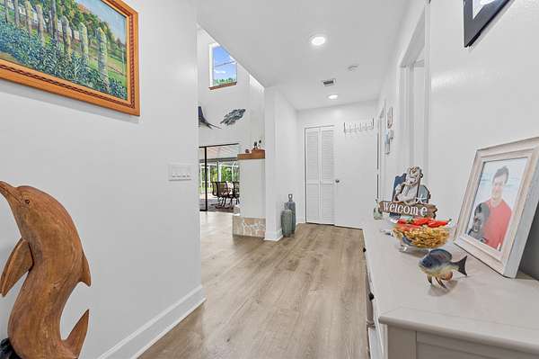 Est $3,975/moPrivate oasis on nearly 5 acres! This updated 2 master suite, 2.5 bath pool home features a new metal roof, impact windows (except sliders), and a spacious workshop. Open layout with vaulted ceilings, wood-burning fireplace, and modern kitchen with white cabinets and stainless steel appliances. Split-bedroom floorplan offers privacy and flexibility. Enjoy the screened-in pool and expansive patio, ideal for relaxing or entertaining. No HOA--bring your toys, animals, or RV. Peaceful country living just minutes from I-95 and Vero Beach!