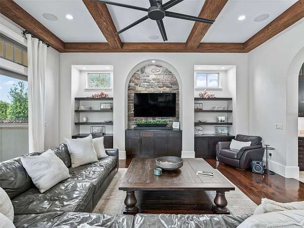 - Built-In Features, Ceiling Fans(s), Dry Bar, High Ceilings, Kitchen/Family Room Combo, Primary Bedroom Main Floor, Walk-In Closet(s)