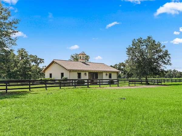 Elegant 19+ acre estate style farm in the gated Equestrian Community of Bel Lago, well located close the World Equestrian Center & shopping. This gorgeous horse farm boasts a custom built 6200+ sq ft pool home with a guest casita, 4-stall center aisle barn, large grass paddocks & nearby riding trails. The resort-style pool area overlooks the acreage & oak trees & has travertine decking & a large screened-in lanai with summer kitchen & fireplace. The home boasts luxurious high-end finishes throughout & has 4 bedrooms, 5 bathrooms plus two offices. Each bedroom has an en-suite bathroom for privacy. The gourmet kitchen has an enormous island overlooking the family room & lanai with plenty of space to entertain. The expansive primary suite is located on the main floor with 2 large walk in closets & a spa-like en suite bathroom. The home also has a large open loft area on the second floor with a balcony overlooking the grounds, in addition to the two guest bedrooms with bathrooms. Enjoy the Florida lifestyle by the beautiful pool and outdoor living area complete with a summer kitchen and fireplace. The private casita is located by the pool & is perfect for guests or a mother-in-law suite. There is a 3 car garage with additional washer & dryer & partially finished loft area above the garage for storage. Bring your horses & move right in to this elegant 19+ acre estate!