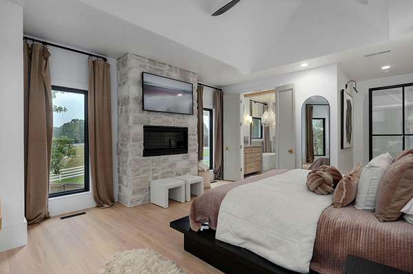 (Please see attached property detail sheet) A Luxurious Equestrian Estate located right here in the Ozarks. Located right outside of Republic this stunning estate is nestled on 7+ acres offering the perfect blend of luxury and privacy. Conveniently located 20-25 mins from Cox and Mercy. Walk in to a gorgeous 2 story foyer with a custom spiral staircase, opening to a warm cozy living space with a 50'' fireplace and oversized arched windows. Enjoy entertaining in your custom chefs kitchen featuring double islands, 48'' range, and walk-in wine closet, bar, and butlers pantry. Every room has walk-in closets with the master having his and hers designer closets. Outdoor entertainment is highlighted by a 20x45 infinity-edge saltwater pool with a spa and fire pit, in-ground trampoline as well as expansive patios. With a 6-car garage, gated entry, and endless space for both relaxation and recreation, this one-of-a-kind property is a true luxury retreat. 58'x72' barn with office and full bath, shed with electric ran to it behind barn. ** Additional 10 acres with barn and 1,200 sqft farmhouse available.