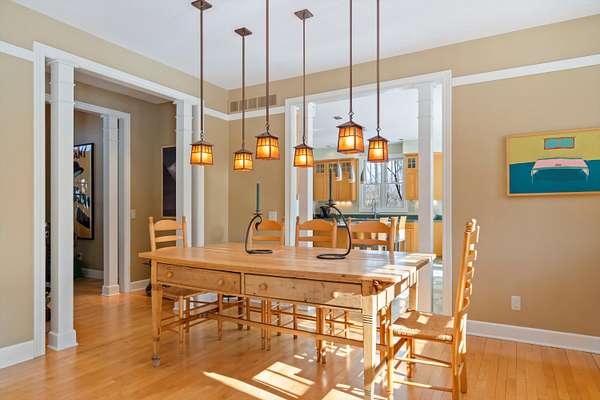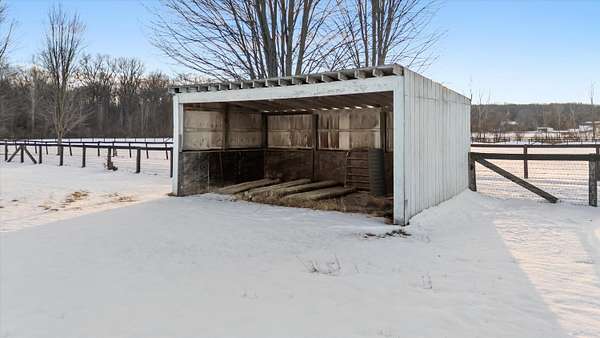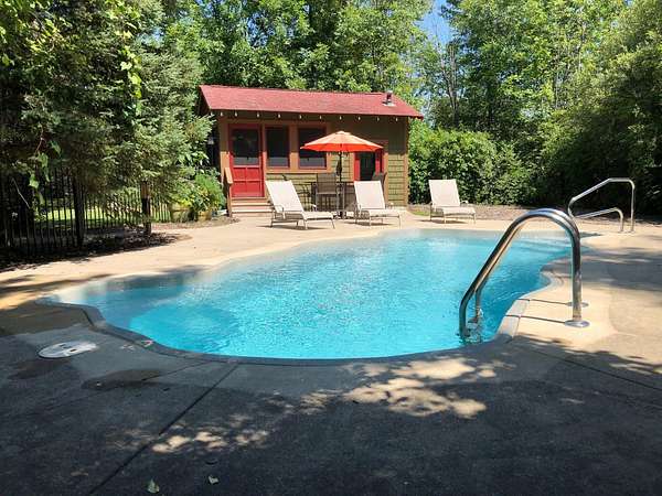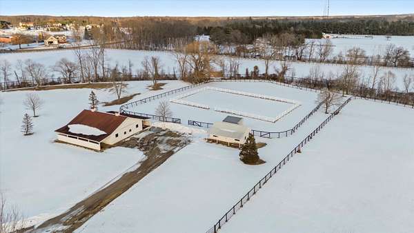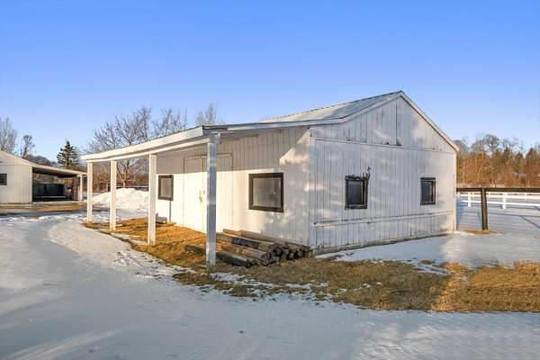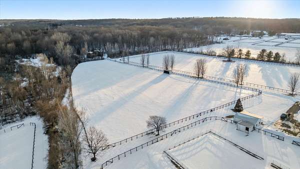Newly Listed Greene & Greene inspired Craftsman designed home. 4 bedrooms, 3.5 baths. A maple kitchen and maple throughout the home, as well as a custom maple buffet bring so much style to this home. There are 2 primary suites, one on each floor plus a large game room with a vintage slate pool table. One of a kind, hand painted iron/mica chandeliers w/ the artist featured in ''Architectural Digest''. Many transom windows provide so much light. Solid wood doors and energy efficient 2x6 walls too. Heated in-ground pool & custom pool house. Pond- perfect for Winter skating & Summer to drop in a line. 51 acres provide the perfect get a way. There are 5 large, fenced pastures, each with a run-in shelter. This beautiful farm is the home of a throughbred named Win Chill who famously ran in the Kentucky Derby! Large 7 stall stable, heated office and an equipment building. Outdoor arena too. Home warranty for your peace of mind.