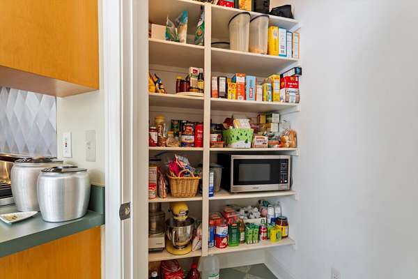 - Ceiling Fan(s), Center Island, Eat-In Kitchen, Garage Door Opener, Guest Quarters, Pantry