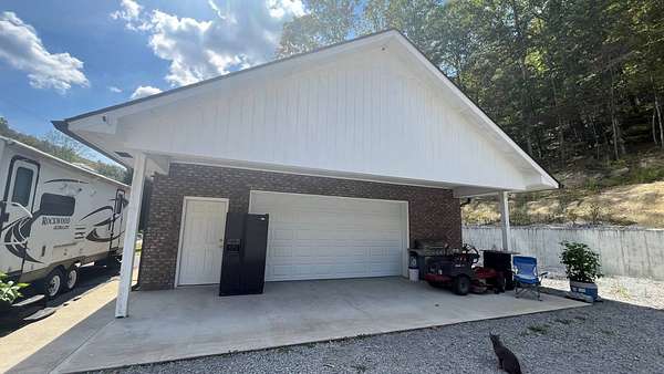 Newer Brick Home is situated between the cities of Liberty (18 Miles) and Columbia (12 Miles). The Home was built in 2023 and has only been lived in Part Time so it is Like New with an Attached 20x20 Garage and a Detached Garage. The Home offers Four Bedrooms (Carpet Flooring) with One being Primary, having its own Bathroom, Tiled Walk In Shower and Walk In Closet. One Bedroom is currently used as an Office. The Living Room is Open and Spacious with Hardwood Flooring. The Kitchen has Custom Built Cabinets, Gorgeous Granite Countertops, a Breakfast Bar and Tile Flooring. Refrigerator, Stove and Microwave will stay with the Home. Double Doors in the Dining Room lead out to an Open Patio between the Home and Retaining Wall. The Detached Garage is Brick, 30x30, has Electricity, Concrete Floor, Overhead Door. Beside the Detached Garage is a Camper Hookup with Separate Septic, Separate Water Meter and Has Electricity. This Property is Great for Avid Hunters! It is somewhat Secluded surrounded by Woods where One can see Lots of Wildlife, Especially Deer and Turkey which can be seen in Pictures! The property has the Camper Hookup, Two Water Meters, Two Septic Tanks, a Trail Road for Atv and a great spot for the Gardener!
