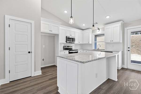 New Construction 100% Completed and ready for a Buyer!~ Not in a Subdivision, NO HOA on 1.55 Acre Lot! Abraham Floorplan has an Open Concept with Vaulted Ceilings! Family Rm has Woodburning Fireplace with Built-ins on each side. Granite in the Kitchen, Large Island, Breakfast Bar and Pantry! Separate Dining Rm! Split Bedroom plan! Master Suite boast tray ceilings, separate/double vanity, granite in master bath, soaking tub w/separate shower and Walk-in Closet! LVP flooring throughout except bedrooms. Covered front and back porches! Homes qualify for USDA 100% Financing! Builder is offering $4000 incentives in closing costs with use of preferred lender.