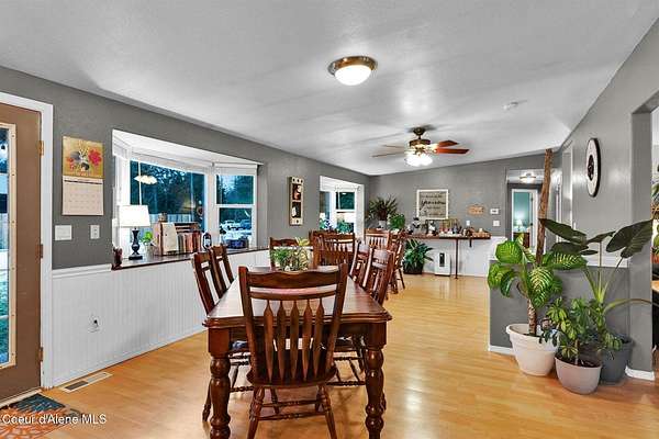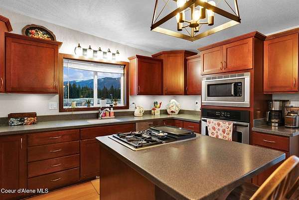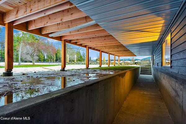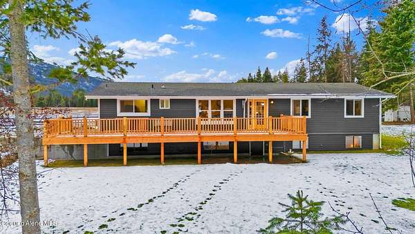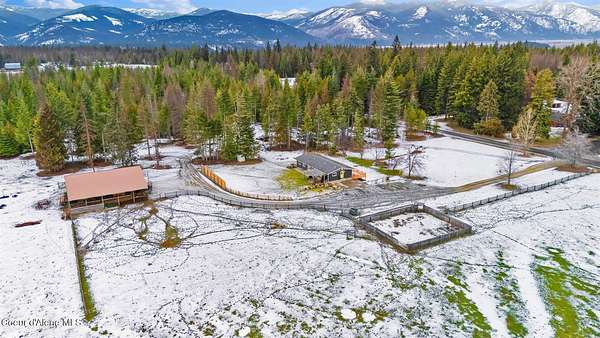 This 5-bedroom, 3-bath home sits on 9.62 acres and features a 60x60 pole barn, landscaped yard, and fenced garden. Enjoy beautiful views of the Purcell and Cabinet Mountain ranges, with stunning sunset colors reflecting off the Purcells. The main level offers a kitchen with mountain views, spacious dining and living areas, laundry room, full bath, primary suite with jetted tub, and two additional bedrooms. The basement provides potential for a mother-in-law suite with exterior access, two bedrooms, a bathroom, large living area, and a storage room with washer and dryer hookups. The property includes approximately 7 acres of pasture, 2 acres of forest, and 1 acre of landscaped yard with a new sprinkler system. Outdoor highlights include a patio with pergola, rock garden, fire pit, berry patches, grape arbor, fruit trees, frost-free watering post, and a fenced dog run.