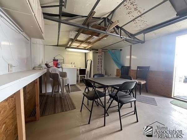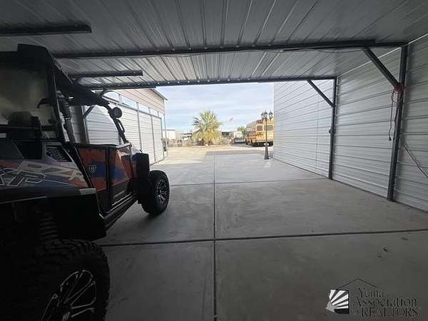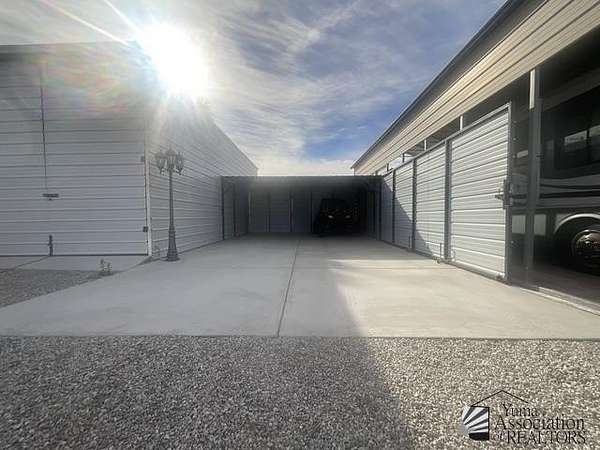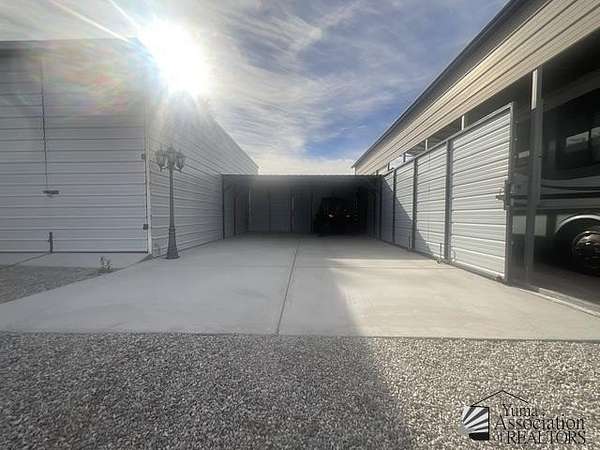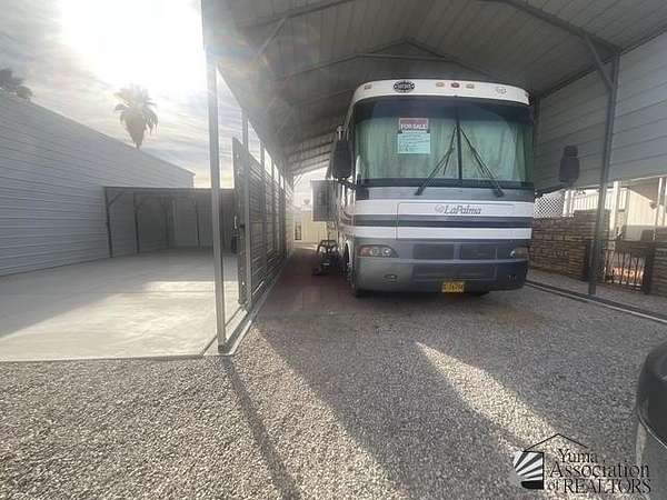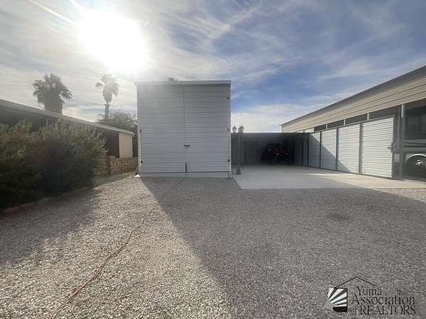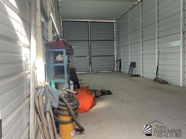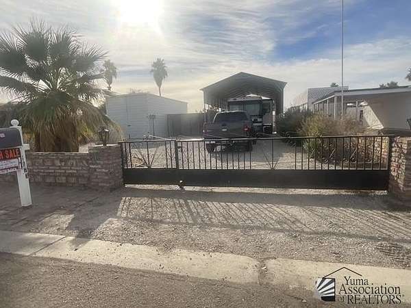 Est $828/moGreat RV lot located in Yuma Foothills. Centrally located with a 40'X14' (560 Sq. Ft.) metal RV garage with hook ups, 40'x18' (720 Sq. Ft.) RV Covered support with hookups, 40'x20' slab with gate to enclose for toy storage, 24'x8' Connex storage box workshop with shelves, 19.50'X13.75' support building that includes washer/dryer, an additional 8'x10' metal storage shed that is all fenced in. This lot is set up for mega storage with 2 large rolling gates and a walk thru gate. This property is ready to go for that winter retreat and storage. Lot dimensions are 110'X63'. Call today for your appointment to view.