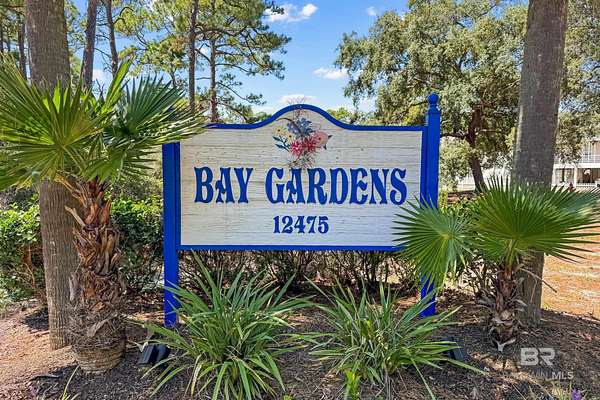 From Hwy 59 turn West on State Hwy 180 and drive 7.4 miles to Bay Gardens entrance on north side of Hwy 180. Bay Gardens entranceis almost directly across the street from Mile Marker #13.