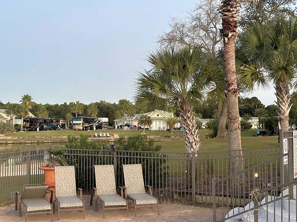 Tucked away in a peaceful cul-de-sac, Lot 178 is one of only five premier lots in Lake Osprey RV Resort Country Club that back up to a serene, protected wood line, offering unmatched privacy and tranquility. This oversized lot provides ample space for your RV lifestyle while also allowing for the optional construction of a 1,200 sq. ft. home with expanded outdoor living areas. Thoughtfully designed with lush landscaping and a beautifully curved patio, this lot is perfect for relaxation, complete with seating and a gas firepit overlooking the ravine and wooded preserve. Ready for immediate use, the 75-foot RV pad features 50/30-amp hookups, ensuring a hassle-free setup. With HOA fees of just $320 per month, ownership is effortless, covering water, sewer, on-site trash pickup, high-speed internet, cable TV, and lawn care. As part of a deeded RV subdivision, you'll have access to resort-style amenities, including a clubhouse, infinity pool, hot tub, tiki bar, putting green, pickleball courts, dog park, and laundry facilities. Beyond personal enjoyment, Lot 178 is also a fantastic investment opportunity, with strong rental demand and eligibility for the resort's on-site rental program. Whether you're looking for a private retreat, full-time residence, or an income-generating property, this rare lot offers flexibility, exclusivity, and incredible value. Don't miss your chance to own this unique slice of paradise-contact us today! Buyer to verify all information during due diligence.