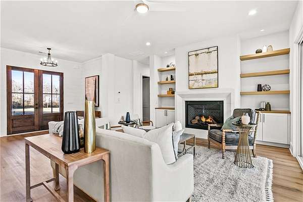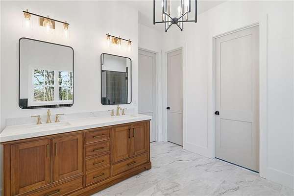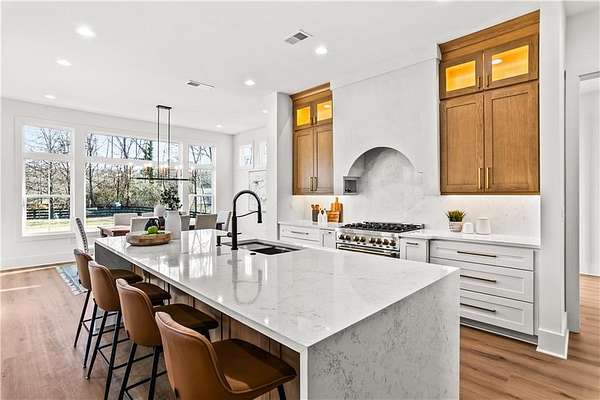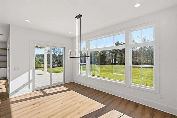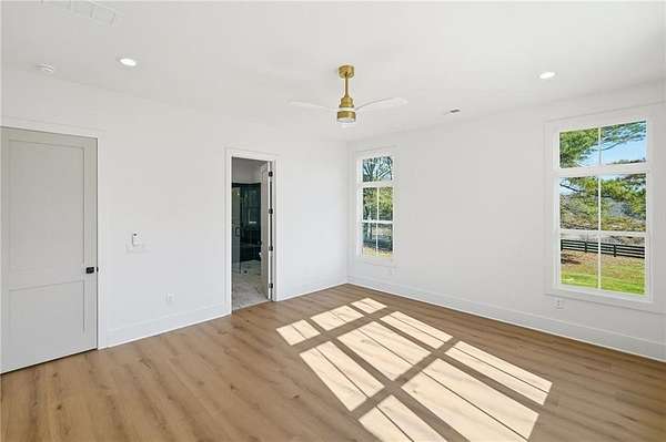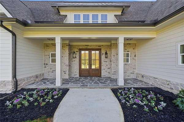 Luxury, Privacy & Convenience on Nearly 2 Acres - No HOA Welcome home to this stunning brand new residence perfectly situated just minutes from I-575, top-rated schools, shopping, dining, and everyday conveniences-yet offering the peace, privacy, and space of 1.99 acres with no HOA. Thoughtfully designed with high-end upgrades inside and out, this property delivers an exceptional blend of craftsmanship, functionality, and style. Exterior & Property Features Built with longevity and curb appeal in mind, the exterior showcases Hardi siding, MI tilt-out vinyl windows, a standing seam metal + architectural shingle roof (30-yr warranty), and a gorgeous stone water table on three sides. The welcoming flagstone front porch and upgraded landscaping set the tone from the moment you arrive. The expansive three-car garage features quiet-close doors, epoxy flooring, EV charger, shop lighting, cameras, extra outlets, and a tankless water heater. A buried propane tank services the gas range, 93% efficiency gas heat system, and remote-start fireplace. A covered rear porch with fan and recessed lighting overlooks a huge, flat, fully fenced backyard (4-rail horse-style with wire)-ideal for a future pool, gardens, chickens, or play areas. A walk gate is already in place and the property is prepped for a future private drive gate. Interior Highlights Step inside through double wood entry doors into a home filled with natural light, 10' main-level ceilings, 8' solid 2-panel slab doors, and upgraded 7" MSI flooring throughout. Thoughtful upgrades are everywhere-tile, mirrors, lighting, hardware, plumbing fixtures, open-tread stained stairs, and dual HVAC systems for main and upper levels. The designer kitchen features Custom Venetian plaster vent hood, Stained white oak & off-white cabinetry with soft-close doors and drawers, 36" dual-fuel 6-burner range, Huge waterfall island with microwave drawer, cookie-sheet pullout & tilt-out sink door, Solid-surface counters & backsplash, Cabinets to ceiling, glass-accent lighting & under-cabinet lighting, Upgraded sink, disposal, and pull-out faucet A true scullery elevates the functionality with honed granite counters, open wood shelving, beverage/wine fridge, ice maker, sink with soap dispenser, soft-close cabinetry, and a walk-in pantry. The dining room is surrounded by windows and sliders showcasing the private backyard and covered patio, flowing seamlessly into the family room with custom cast mantle, built-ins with white oak floating shelves, additional LED lighting, and a magnificent 42" direct-vent fireplace with lights, sounds, color features, and remote start. Main Level Living: The primary suite on main offers a spa-inspired bath with zero-entry frameless shower, gorgeous upgraded tile, brushed-gold fixtures, and a freestanding tub. A secondary bedroom on the main also enjoys access to a zero-entry bath-perfect for guests or multigenerational living. Additional main-level features include: Drop zone with power drawer, under-cabinet lighting, and under-stairs low-voltage hub Mudroom with extra trim and a separate storage room Upper Level Space Upstairs offers 9' ceilings, 6'8" solid-core doors, three spacious bedrooms (each with walk-in closets), a large loft, and a massive finished bonus room over the 3-car garage-ideal as a media room, gym, studio, or man cave. Pull-down stairs provide easy access to HVAC equipment. This home is truly the complete package-luxury finishes, thoughtful upgrades, incredible outdoor space, and unmatched convenience, all with the freedom of NO HOA. A rare find like this does not come along often.