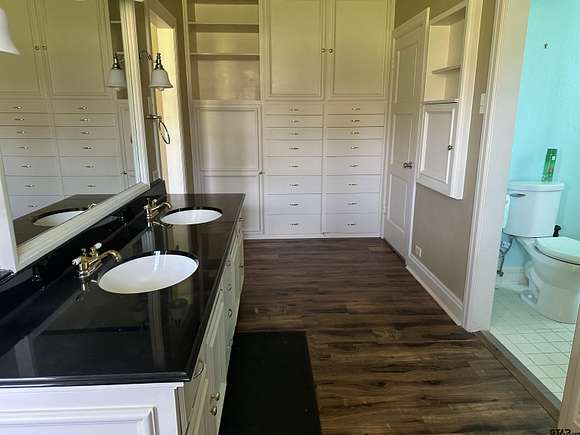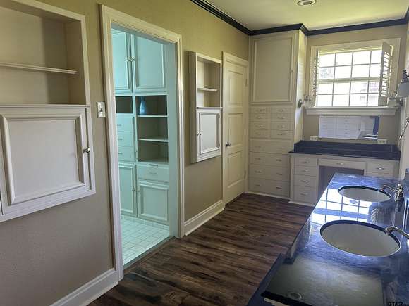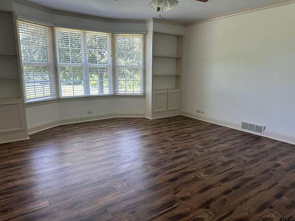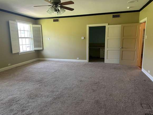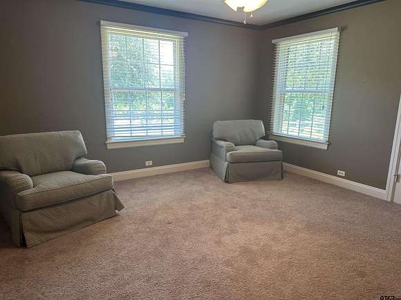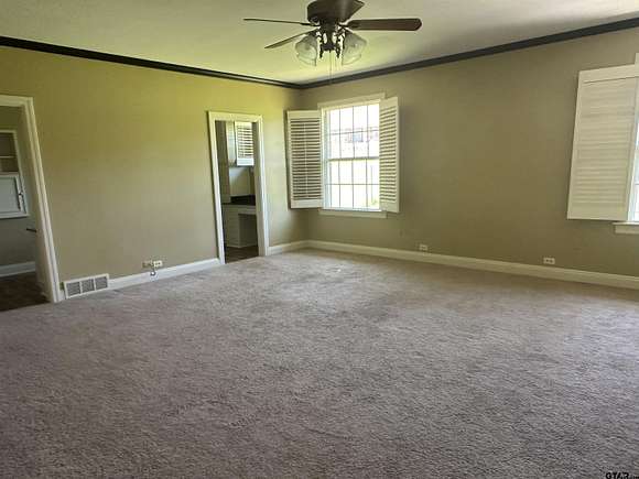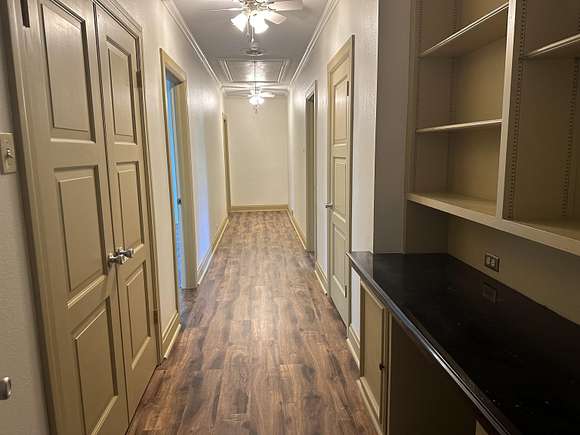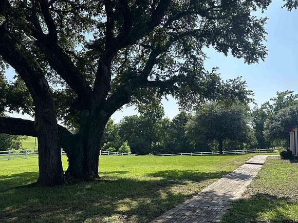 This impressive estate sits on 3.8 fenced acres at a desirable corner lot, featuring a concrete driveway, barn/workshop, and a spacious fenced backyard. The home welcomes you with covered front and back porches offering serene views and a charming brick-floored foyer that opens to a large living room with a wood-burning fireplace, built-ins, and beautiful hardwood floors. Inside, you'll find 3 generously sized bedrooms and 3.5 bathrooms, each with walk-in closets. The primary suite is a true retreat with a sitting area, private office, dual walk-in closets with built-in dressers, and a his-and-hers bathroom design. The spacious kitchen is a cook's dream boasting abundant cabinetry, double ovens, pantry, electric cooktop, and ample counter space. The formal dining room boasts a built-in china hutch and china closet. Additional features include a large utility/mudroom with extra built-ins, linen and storage closets and half bath, plus a heated and cooled bonus room perfect for an office, hobby space, photography studio or crafts. A two-car garage offers even more storage. This property perfectly combines space, functionality, and timeless charm--ready for your personal touch."
