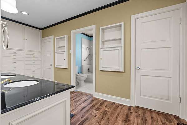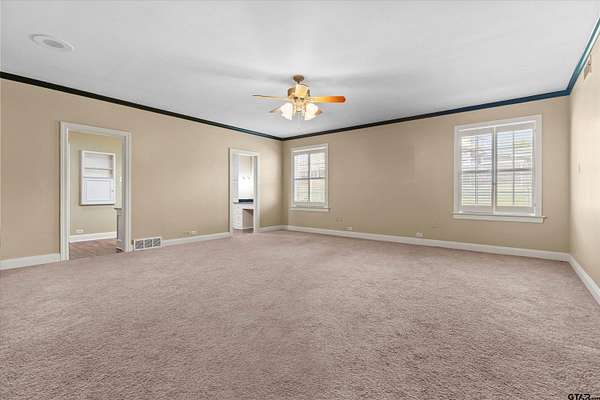 Quality estate home sits on 3.8 fenced acres at a desirable corner lot, featuring a concrete driveway, barn/workshop, and a spacious fenced backyard. This home welcomes you with covered front and back porches offering serene views and a charming brick-floored foyer that opens to a large living room with a wood-burning fireplace, built-ins, and beautiful hardwood floors. Inside, you’ll find 3 generously sized bedrooms and 3.5 bathrooms, each with walk-in closets. Bedrooms are large enough to add a wall for a 4th and 5th bedroom. The primary suite is a true retreat with a sitting area, private office, dual walk-in closets with built-in dressers, and a his-and-hers bathroom design. The spacious kitchen is a cook’s dream boasting abundant cabinetry, double ovens, pantry, electric cooktop, and ample counter space. The formal dining room boasts a built-in china hutch and china closet. Additional features include a large utility/mudroom with extra built-ins, linen and storage closets and half bath, plus a heated and cooled bonus room perfect for an office, hobby space, photography studio or crafts. A two-car garage offers even more storage. This property perfectly combines space, functionality, and timeless charm—ready for your personal touch.” Superior craftsmanship thru out the home. Take a look you will be impressed!!!!
