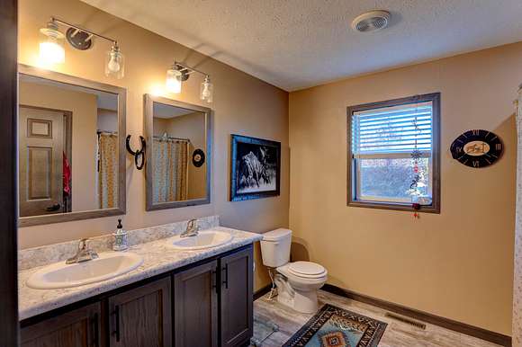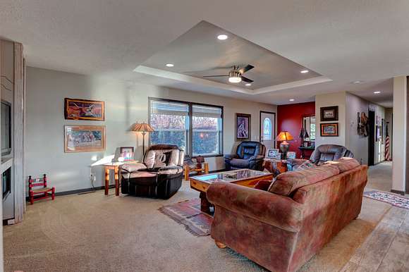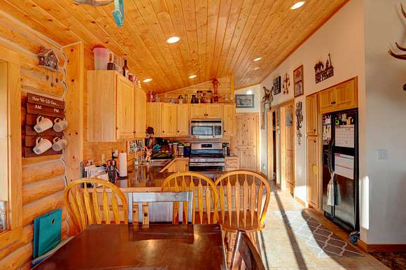 The improvements include multiple buildings. A custom two-bedroom and one-bathroom log home with a wrap-around porch provides a view of the roping arena, horse corrals, and hot walker. Another brand-new mobile home sits on-site with a comfortable porch and beautiful landscaping. The improvements also include a 4,116-square-foot heated shop with large overhead garage doors with the ability to pull through. It offers plenty of space for recreational vehicles, UTVs, farm equipment, and large trucks. This ranch has clean, continuous fencing and well-manicured roads.