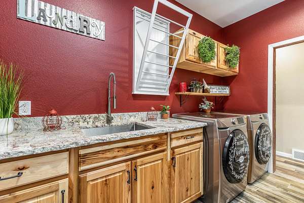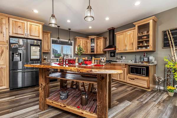 Welcome home to this stunning custom-built ranch in one of the area's premier neighborhoods! Offering the best of both worlds--close to town with a peaceful, wooded backdrop for privacy and abundant wildlife. Homes like this rarely come available! Thoughtfully designed with rustic character and modern comfort, featuring custom craftsmanship, stone accents, and warm natural finishes throughout. Open-concept living and spacious kitchen with inviting living areas inside and outside ideal for everyday living or entertaining. The covered deck and backyard pergola are a dream for outdoor relaxation. Truly one-of-a-kind built with quality and intention. Don't miss this rare opportunity!