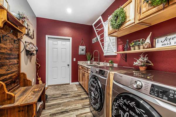 - At Least 1 Tub, Dryer, Walk-In Closet(s), Water Softener Inc, Wood or Sim. Wood Floor