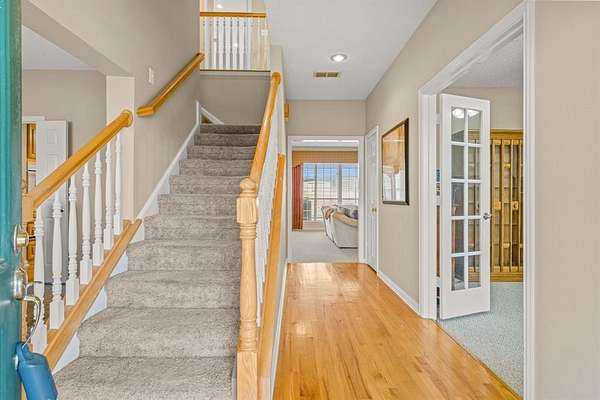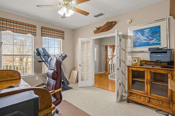 The two-story home offers 4 bedrooms and 3 baths with a comfortable, practical layout. A private study with French doors creates a quiet work-from-home space, while two dining areas provide flexibility for everyday living and entertaining. The kitchen features quartz countertops, a walk-in pantry, and a bright breakfast area with a bay window overlooking the property. The primary suite includes a sitting area, 2 walk-in closets, and an on-suite bath.