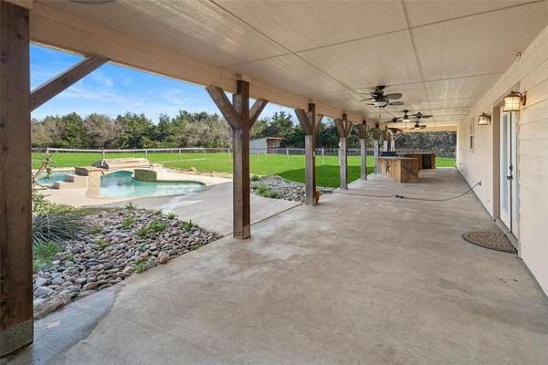 Step outside to the huge covered patio and enjoy the relaxing pool with its unique bridge-style water feature and expansive views of the property. This exceptional property is conveniently located just 10 minutes from shopping and HEB Melissa, 30 minutes from McKinney and Sherman, and an hour from DFW Airport. A personal tour is a must to fully appreciate this one-of-a-kind ranch.