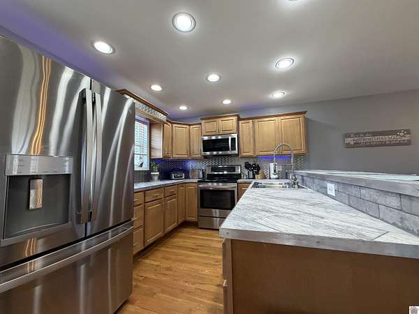 Escape to the peace and privacy of the countryside with this beautifully updated 2 bedroom 2 bathroom home situated on approximately 54 acres in Caldwell County. Tucked away at the end of a dead end road, this property offers the seclusion and serenity you’ve been searching for. Inside, this home boasts beautiful hardwood floors, recessed lighting, thoughtfully updated bathrooms, built in shelving and fresh paint throughout. The kitchen is equipped with stainless steel appliances along with a pantry for added functionality. The primary bedroom features a private ensuite bathroom with a walk-in shower. In the additional bathroom you will find a jacuzzi tub perfect for relaxing and unwinding after a long day. Step outside and take in the beauty this incredible property has to offer including a stocked pond, walking trails, wildlife, natural spring and a creek that runs along the backside of the property. The pavilion outback provides a great space for cookouts and family gatherings.