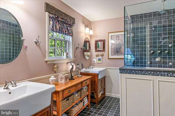 Craftsmanship, character, and comfort come together to capture the essence of Bucks County charm on this 3.66 acre property. Step inside to find sun-drenched living spaces with hand-shaved hardwood floors and a warm, inviting flow. The chef's kitchen is the centerpiece of the home, featuring custom solid wood cabinetry handcrafted by a local cabinet maker, an oversized Amish-built butcher block island, and a cozy English fireplace that make it ideal for both cooking and gathering. The finished basement is outfitted with a custom poured concrete bar and comfortable entertaining space. The primary suite provides a serene escape, complete with a walk-in closet, built-in storage, and a spa-like full bath. An in-law suite with a kitchenette, spacious bedroom, and private deck offers flexible living options for guests, family, or extended stays. Outside, the property is equally captivating. Board and Batten cedar siding and a hand-split cedar roof complement the natural surroundings, while the three-car garage with finished loft provides additional creative or functional space. The fenced garden and temperature-controlled studio offer opportunity for a variety of lifestyles - creating art, growing vegetables, or raising chickens. A tranquil koi pond adds to the sense of calm and connection to nature. With a septic system equipped for future expansion, every detail of this home has been considered for longevity and versatility. Ideally situated just minutes from historic Doylestown Borough, this extraordinary property embodies the charm, artistry, and spirit that define Bucks County living.