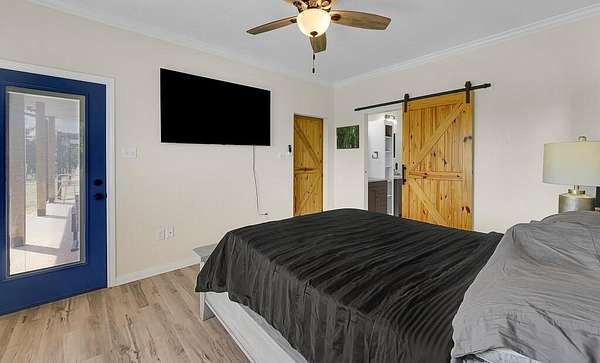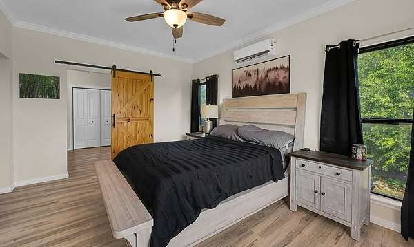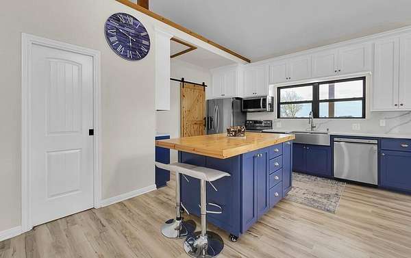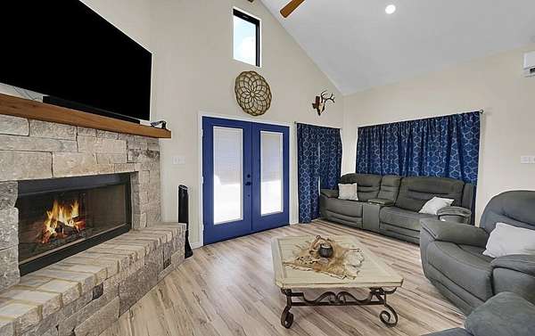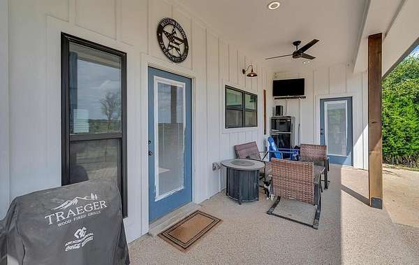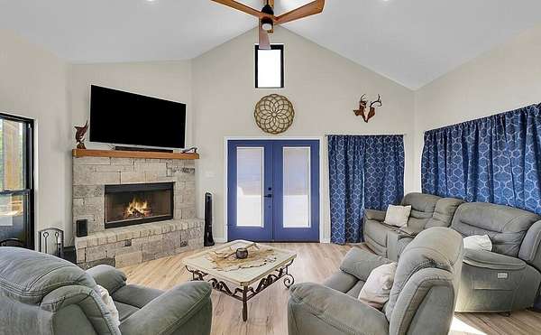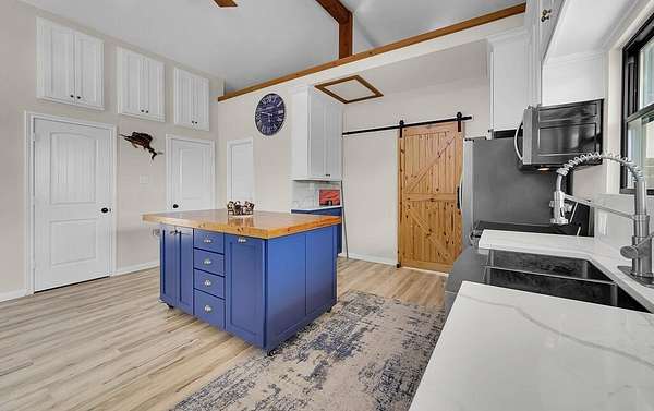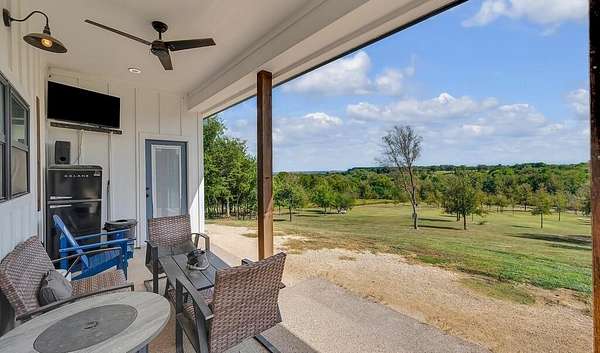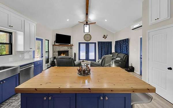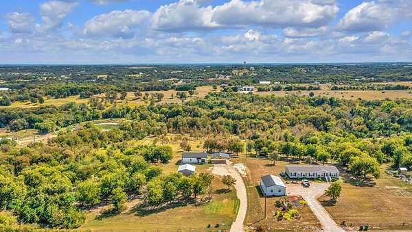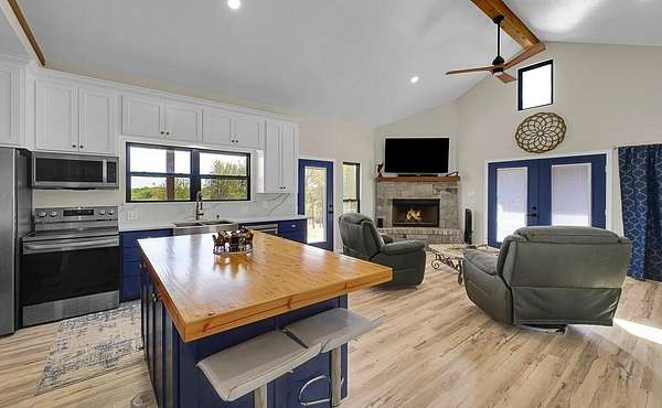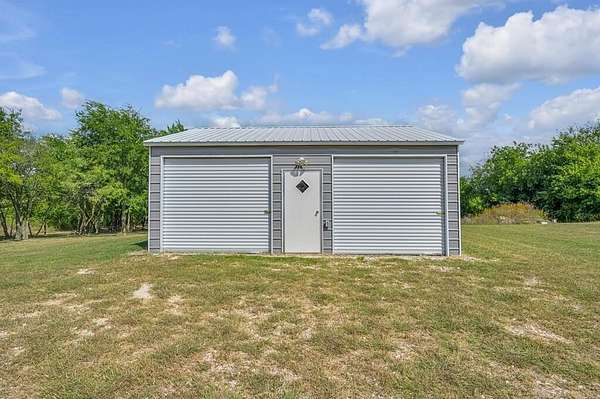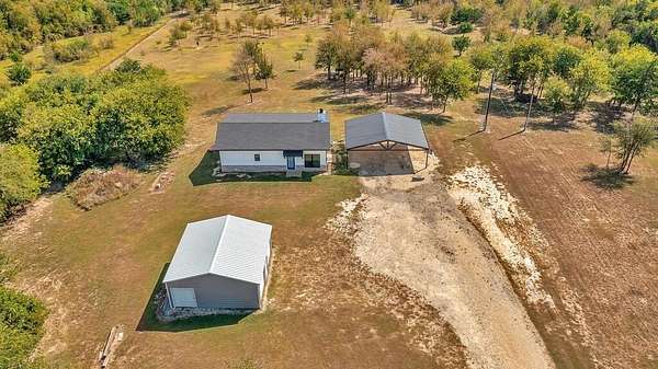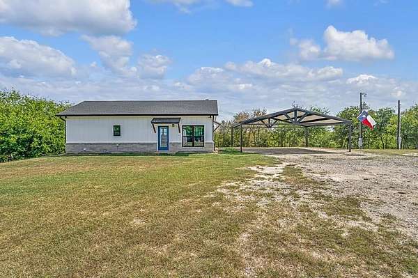 Discover peaceful country living in Moody ISD! Nestled on 6 beautiful acres, this charming home offers the perfect blend of comfort, function, and rural tranquility. With 837 sq. ft. of living space plus a versatile loft (not included in square footage), this thoughtfully designed property lives large. Inside, you'll find an inviting open floor plan with luxury vinyl plank flooring throughout. The living room features large windows, French doors leading to the carport, and a stunning stone wood-burning fireplace that serves as the focal point of the space. The kitchen is both stylish and practical, offering a stainless double sink, electric range, dishwasher, built-in microwave, pantry, storage closet, and a movable island that can be rearranged to create space for a breakfast table. The primary bedroom offers patio access with a peaceful view of the back acreage. The primary bath includes dual vanities, built-in shelving, a tiled shower with bench, a walk-in closet, and a laundry closet with room for a full-size washer and dryer plus hanging space. Pull-down stairs provide access to the loft area, perfect for guests or additional storage. Enjoy outdoor living on the covered back porch overlooking the manicured acreage and a seasonal creek that runs along the rear of the property. Additional features include a two-car garage or workshop and a three-car detached carport, both with electric, providing plenty of parking and workspace. Flood light with switch at back porch makes entertaining outdoors a breeze. Whether you're seeking a serene retreat or a practical homestead, this property offers the ideal combination of comfort and countryside charm. $399,000