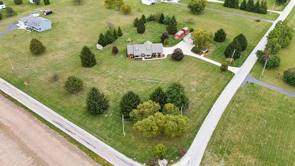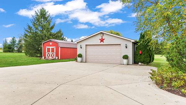 Welcome to this beautifully maintained 4 bedroom, 3 full bath home, situated on 2.5 picturesque acres with two outbuildings, a detached garage, and two sheds, offering 2,075 sq. ft. of comfortable living space. Built in 1996, this property blends quality craftsmanship with modern updates throughout. The kitchen features soft-close cherry cabinets, a large walk-in pantry, and a new refrigerator installed in June 2025-perfect for the home chef. Each custom-designed bathroom is wheelchair accessible, offering both style and functionality. The home also features a very spacious bedroom above the garage, perfect for guests, a home office, or a private retreat. Enjoy cozy evenings by the propane fireplace with blower, and take advantage of the included TVs, which will convey with the home. Additional highlights include a 50-gallon propane water heater, newer garage doors, and outdoor lighting surrounding the property for enhanced curb appeal and security. Step outside to a massive back deck, replaced in 2024 and stained in 2025, featuring solar lights on each post, with low-maintenance aluminum construction. Both the attached and detached garages are heated, with the detached garage including an installed air compressor and built-in shelving for storage. The attached garage has an additional refrigerator and freezer. All windows and doors are premium Andersen, and the roof was replaced in 2015. The HVAC system (air conditioner and heat pump) was installed in 2022 for year-round comfort. The propane tank is underground for eye appeal. A new front porch swing completes the inviting exterior-perfect for relaxing evenings in this well-cared-for home.