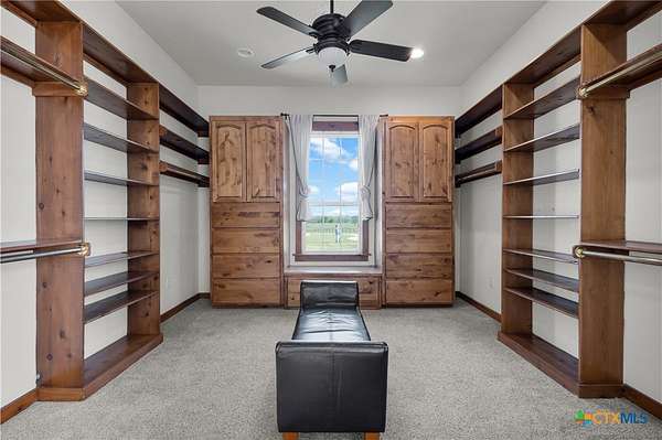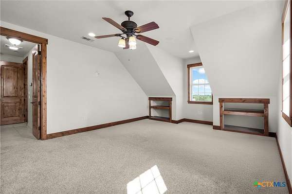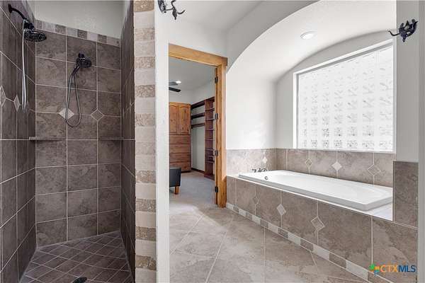 - Attic, Breakfast Area, Built In Features, Ceiling Fans, Custom Cabinets, Dining Area, Double Vanity, Entrance Foyer, Game Room, Garden Tub Roman Tub, Home Office, Main Level Primary, Multiple Dining Areas, Multiple Living Areas, Primary Downstairs, Recessed Lighting, Separate Formal Dining Room, Separate Shower, Stone Counters, Vaulted Ceilings, Walk In Closets