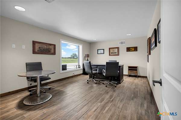A rare opportunity to own 32 private, gated acres in North Texas with a luxury custom home, equestrian facilities, resort-style pool, guest quarters, and a massive 80' x 100' climate-controlled shop. Designed for privacy, flexibility, and elevated country living, this estate offers the scale and infrastructure buyers search for but rarely find. Property Highlights - 32 gated acres - Custom 4,335 sq ft main residence - 5 bedrooms | 4 full bathrooms | 2 half bathrooms - Dramatic floor-to-ceiling fireplace - Open living spaces with natural light - Dedicated home theater - Private office or study Equestrian & Land Improvements - Covered riding arena for year-round use - 5 horse stalls - Tack room - Hot / cold wash rack - Full bath in arena - Hay and equipment storage Standout Features - 80' x 100' fully insulated, air-conditioned shop - Multiple bays - Office space - Restrooms and kitchenette - Durable epoxy-coated floors Outdoor & Lifestyle - In-ground pool with sweeping acreage views - Ideal for entertaining or quiet retreat living Additional Structures - 1 bedroom / 1 bathroom guest or trainer quarters - Large workshop - RV hookups Improvements offer exceptional versatility and may support allowable leasing uses. Ideal for equestrian pursuits, multi-generational living, event space, or a private Texas retreat-this estate delivers luxury, land, and flexibility without compromise.