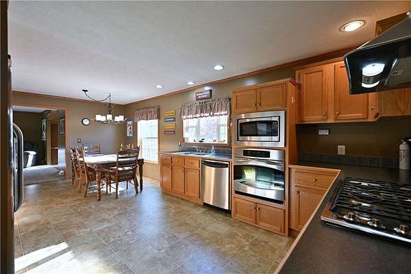 3-bedroom home in Gordon situated on 5+ acres. This well-maintained home has so many features, including 3 bedrooms, 2 full baths, main floor laundry w/sink and top-of-the-line appliances, a large eat-in kitchen with w/stainless steel appliances, a 6-burner gas cooktop and hood system, a built-in oven and microwave, a spacious living room area with a fieldstone wood fireplace, and patio doors leading out to the backyard deck. The 36 x 56 garage has a 12-foot garage door, a concrete slab and apron, and ample light fixtures. There is a spacious 4-season cabin on the property that would be a perfect base camp for hunters or extra space for overnight guests. The property is nicely landscaped, and wildlife is sure to visit here with the established food plot. Property borders public recreation land to the North. If that's not enough to impress you, walk down the road just a bit and enjoy Eau Claire River access to cool off in the clear waters of this pristine riverway. Whether you are looking for a permanent home or a cabin getaway, you will appreciate this being located on a dead-end road and area amenities such as recreational trails, beautiful lakes, public hunting land, and many eating and drinking establishments. Gordon is a special place to live and play!