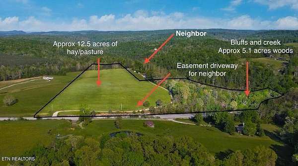 Perfect home site, farm or recreational property! Approximately 20 minutes to downtown Crossville or 20 minutes to Spring City/Watts Bar Lake. 17.6 acres surveyed with approximately 12.5 acres in hay/pasture, 5.1 acres wooded, and approximately 1,000 feet of creek frontage. A culvert and the start of a driveway is in place so the property already has a street address. Over 1,000 feet of highway frontage with city water and electricity available. Approximately 12.5 acres are currently used for hay production and the property is in the Greenbelt tax savings program. Taxes for the entire property are currently $44.83 per year while enrolled. Approximately 5.1 acres of the property is wooded with approximately 1000 feet of frontage on year-round Whites Creek. The creek area offers great camping opportunities with interesting bluff and rock features. *There is a driveway easement for the neighbor around one edge of the field and woods but it does not intrude on anything. This property straddles the Cumberland/Rhea County line but all taxes are paid to Cumberland County per the tax assessor's office. The property address is Cumberland County. Mineral rights do not convey. Buyers to satisfy themselves of any inspections, measurements, statements and information before making an informed offer.